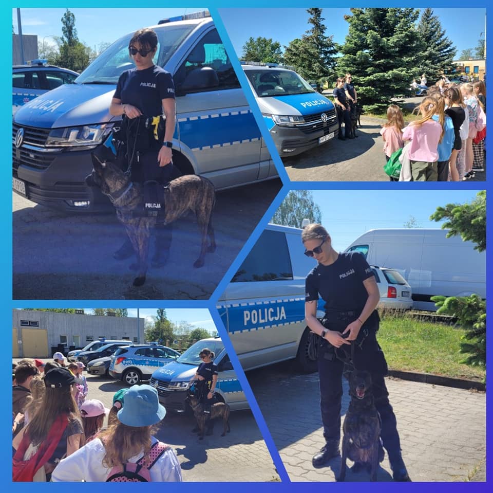 14 maja, wszystkie klasy trzecie wybrały się na wycieczkę do Komendy Powiatowej Policji w Polkowicach. Uczniowie poznali bliżej zawód policjanta, mieli okazję wejść do radiowozu, zobaczyć z bliska policyjny motocykl, a także poznać dwa policyjne psy. Ogromne zaciekawienie wzbudziła wizyta w wydziale daktyloskopii, gdzie każde chętne dziecko mogło mieć zdjęte odciski swoich palców, z czego zdecydowana większość skorzystała. Nie zabrakło również rozmowy na temat bezpieczeństwa, zarówno w życiu codziennym, jak i podczas zbliżających się wakacji.