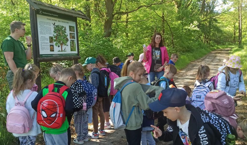 17 maja uczniowie klasy 1b uczestniczyli w warsztatach przyrodniczych, zorganizowanych w ramach projektu ,,Dbamy o bioróżnorodność wokół nas”, które miały miejsce na terenie Nadleśnictwa Przemków. W ramach warsztatów odbyło się spotkanie z leśniczym, który zabrał uczniów na wędrówkę edukacyjną ścieżką przyrodniczą po pięknych lasach przemkowskich. Pierwszoklasiści poznali pracę leśniczego, pod którego okiem poznawali las oraz gatunki roślin i zwierząt. Obserwowali również przez lupy życie owadów i budowę roślin. Po leśnym spacerze uczniowie wzięli udział w drugiej części warsztatów, podczas których rozwiązywali przeróżne przyrodnicze łamigłówki. Wycieczka bardzo podobała się wszystkim. Pierwszoklasiści wrócili pełni wrażeń i nowych wiadomości.