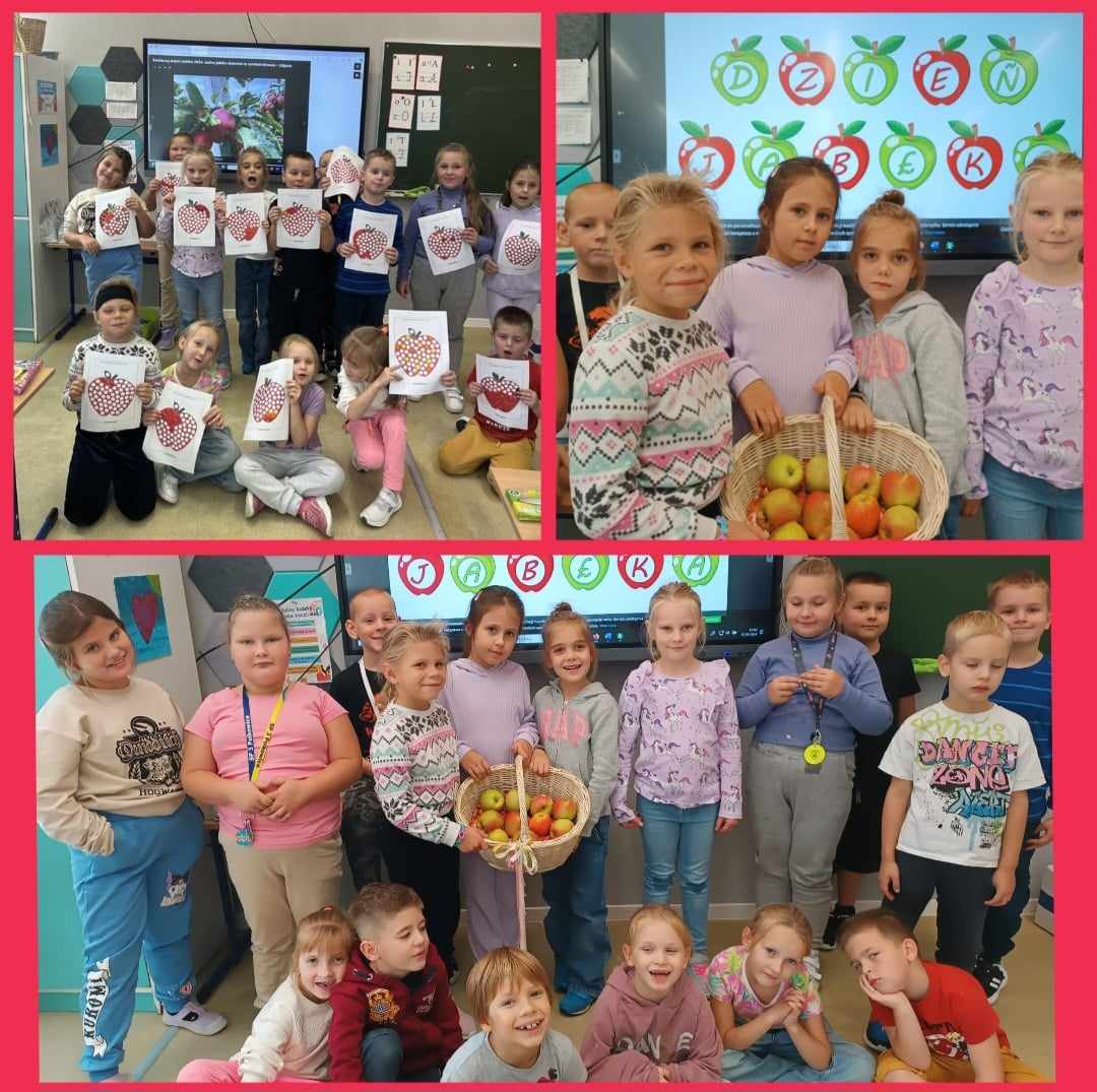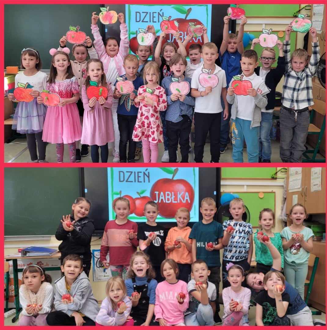 27 i 30.09. klasy pierwsze obchodziły „Światowy Dzień Jabłka”. Była to akcja prozdrowotna, której główny cel to promowanie właściwości odżywczych jabłek i zachęcenie do codziennego spożywania tych owoców. Jabłka dominowały w zabawach ruchowych, muzycznych i plastycznych. Była również jabłkowa matematyka, dzięki której dzieci poznały pojęcia całości, połowy i ćwiartki oraz lekcja przyrody, podczas której uczniowie poznali budowę jabłka i fazy jego wzrostu. Ponadto dzieci próbowały jabłek, których w tych dniach były w klasach pełne kosze. Po tej dawce witamin, uśmiechu i zabawy dzieci z pewnością będą piękne, uśmiechnięte i zdrowe.