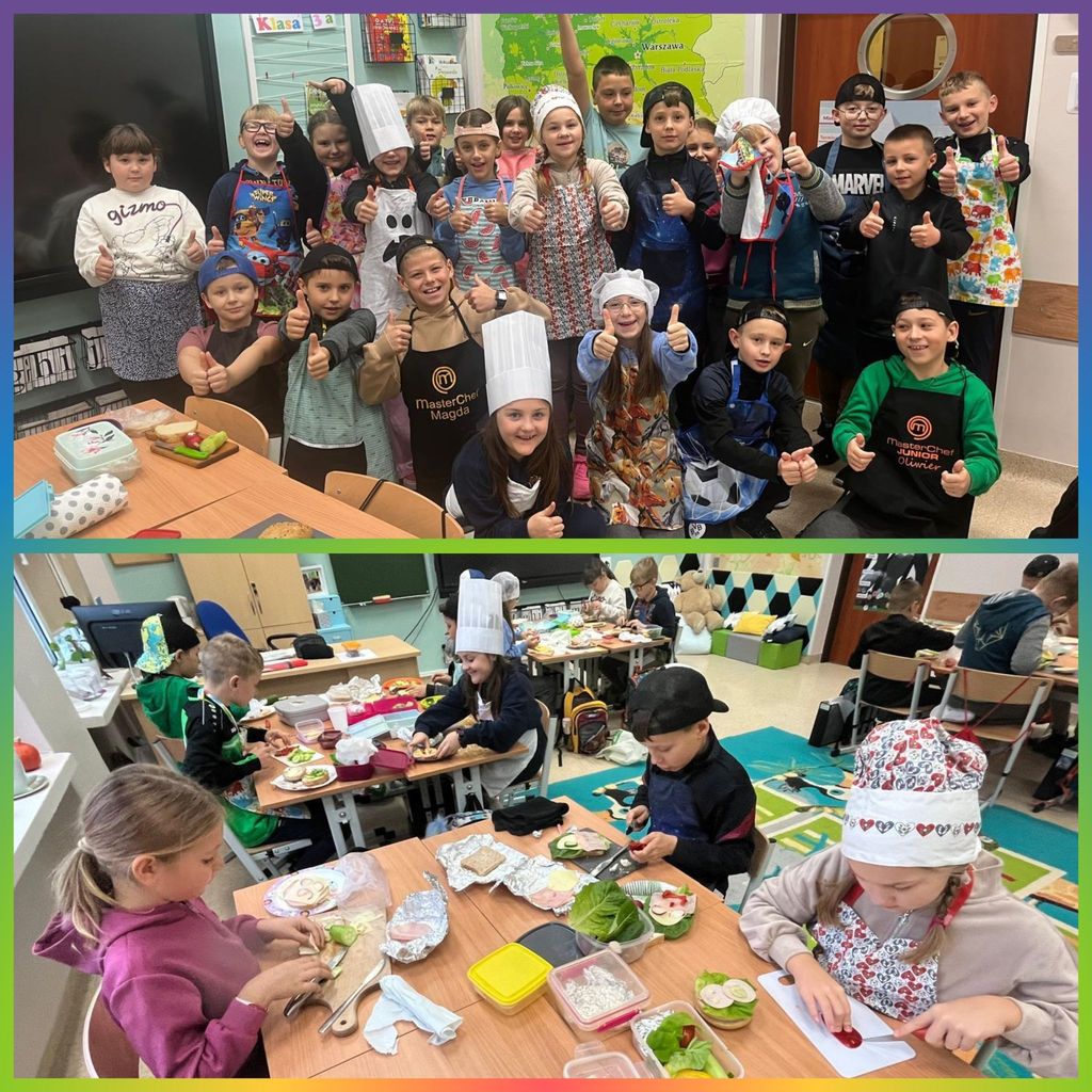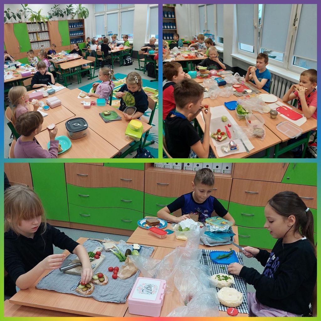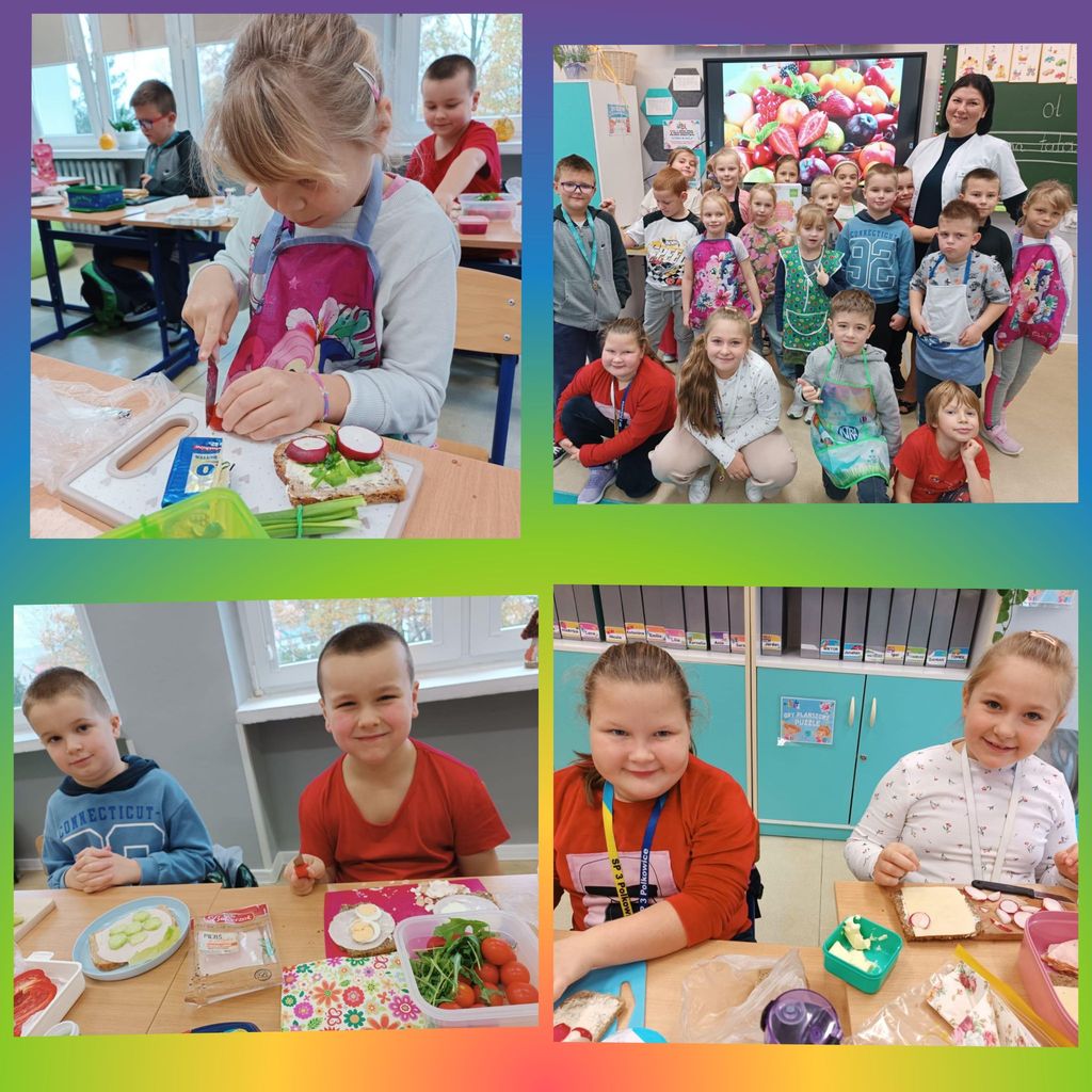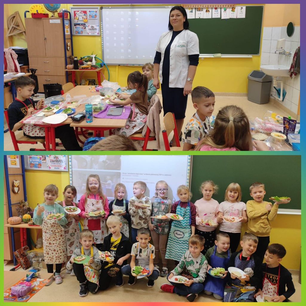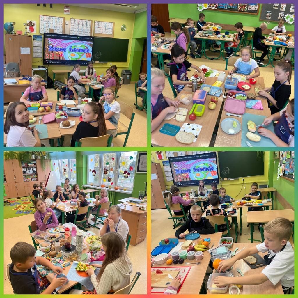 W tym roku nasza szkoła po raz kolejny przyłączyła się do programu edukacyjnego „Śniadanie Daje Moc”. Główne cele tej akcji to promowanie zasad zdrowego odżywiania oraz zwiększanie świadomości uczniów na temat roli śniadania. 7 listopada wszyscy uczniowie klas 1-3 przygotowali zdrowe śniadanie. Były kanapki, sałatki, szaszłyki. Tego dnia przeprowadzono również pogadanki na temat roli śniadania, jako najważniejszego posiłku w ciągu dnia. Klasy pierwsze odwiedziła w tym celu Pani dietetyk, która opowiedziała o tym, że dobrze zbilansowany posiłek daje dzieciom siłę i energię do nauki i zabawy oraz przyczynia się do lepszej koncentracji na wykonywanych zadaniach. Wspólne przygotowywanie, a później spożywanie śniadania sprawiło dzieciom wiele przyjemności i radości.