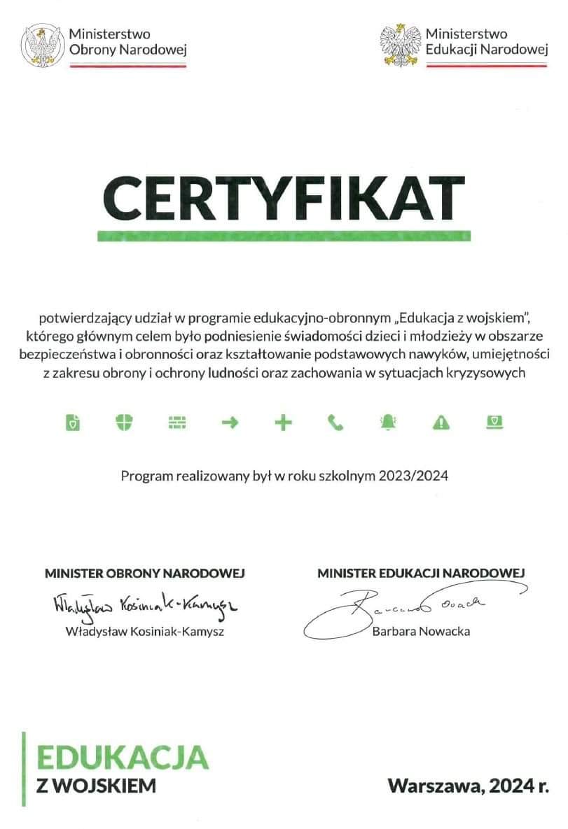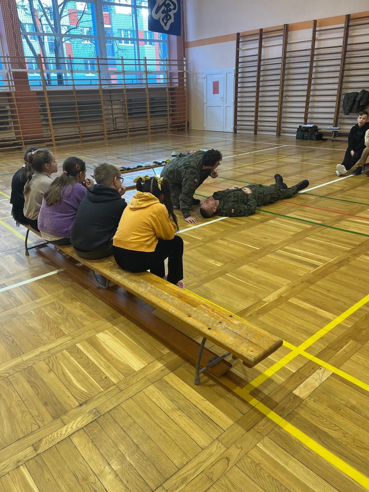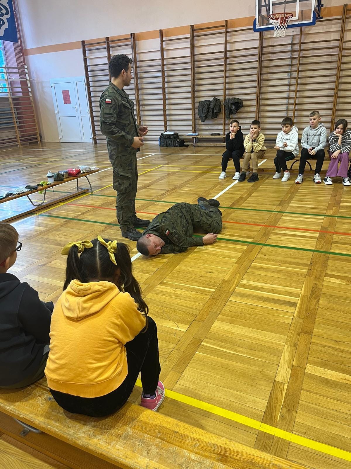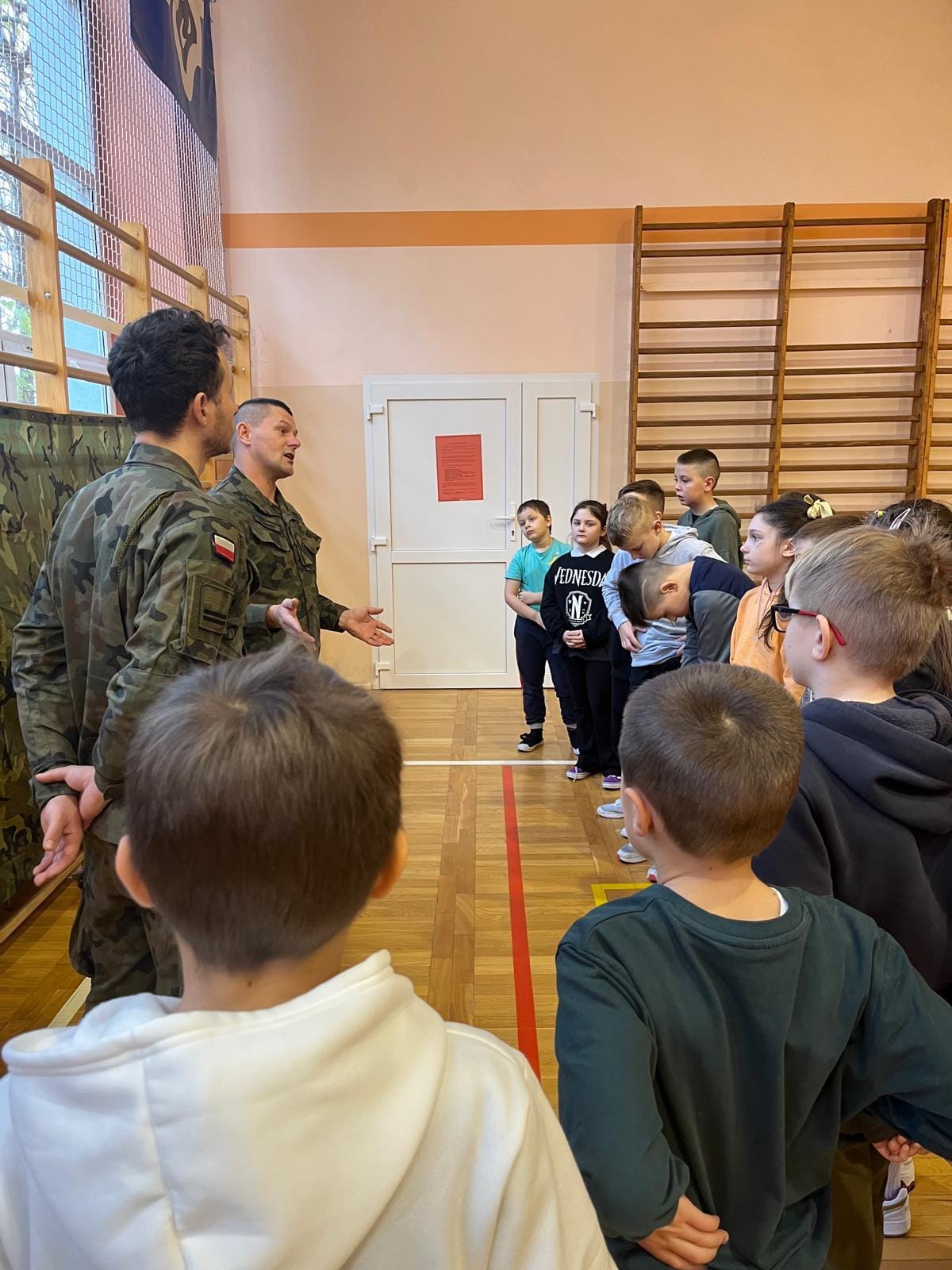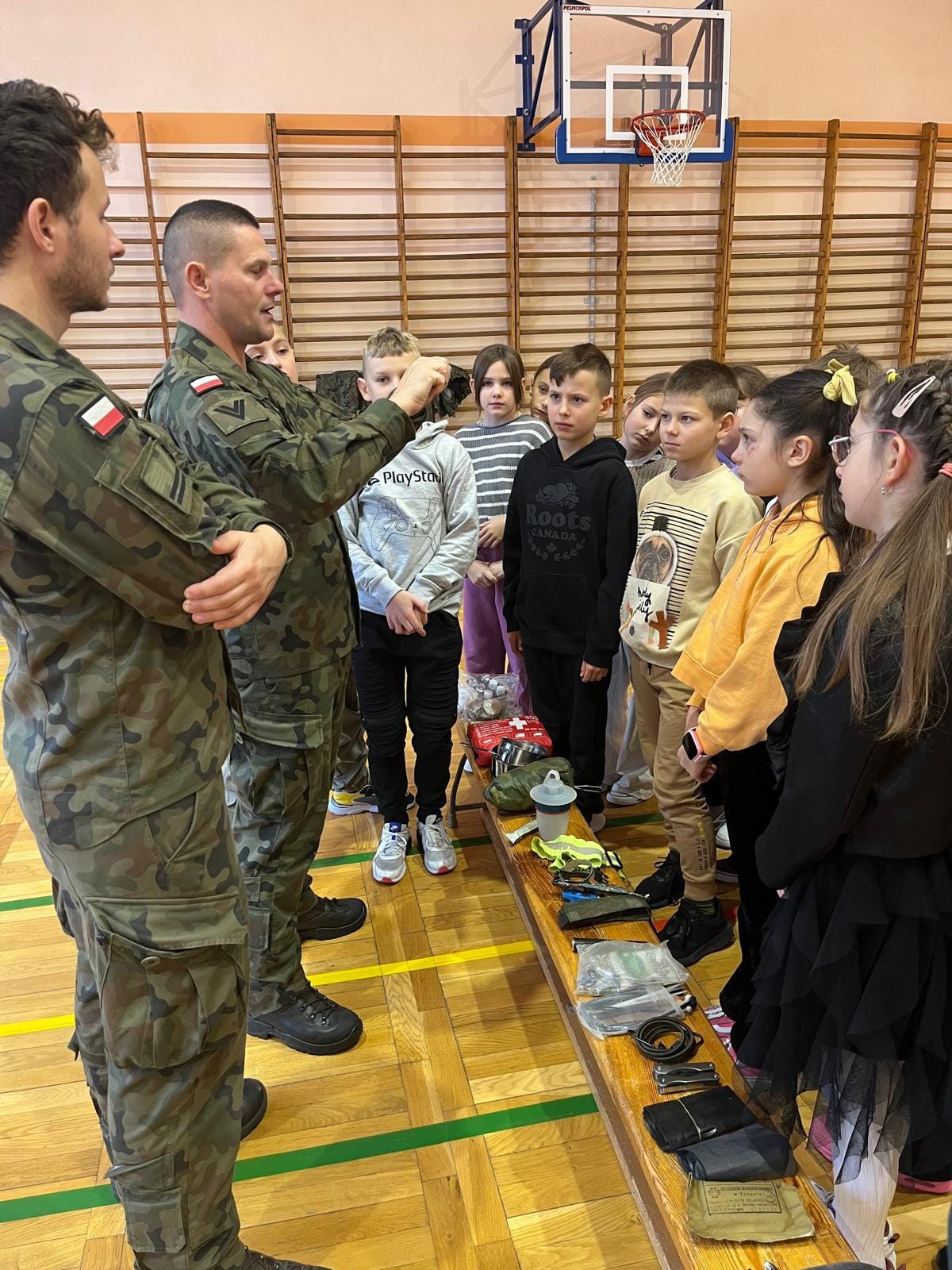 W bieżącym roku szkolnym uczniowie klasy 3a uczestniczą w II edycji programu edukacyjno - obronnego, przygotowanego i realizowanego przez MEN i MON „Edukacja z wojskiem”. W ramach programu, w dniu 21 listopada, podczas szkolenia, przeprowadzonego przez żołnierzy z jednostki wojskowej w Głogowie, uczniowie zapoznali się m.in. z zasadami alarmowania, sposobami szukania i wzywania pomocy, podstawami ewakuacji i schronienia oraz udzielania pierwszej pomocy. Poznali również różne przedmioty, które mogą pomóc w przetrwaniu w sytuacjach kryzysowych. Największą radość sprawiło dzieciom stworzenie namiotu z peleryny i sznurka. To było bardzo ciekawe spotkanie, łączące teorię z praktyką, dające uczniom moc nowej wiedzy i umiejętności.