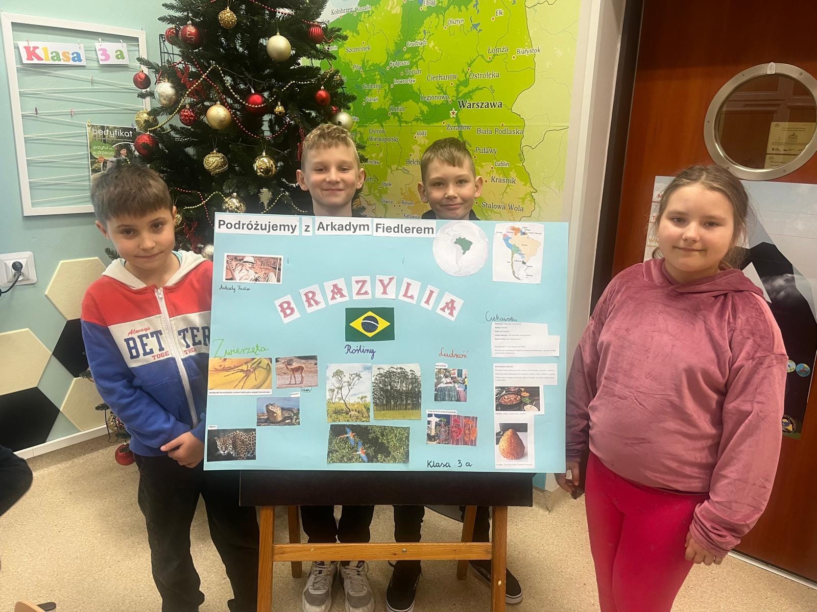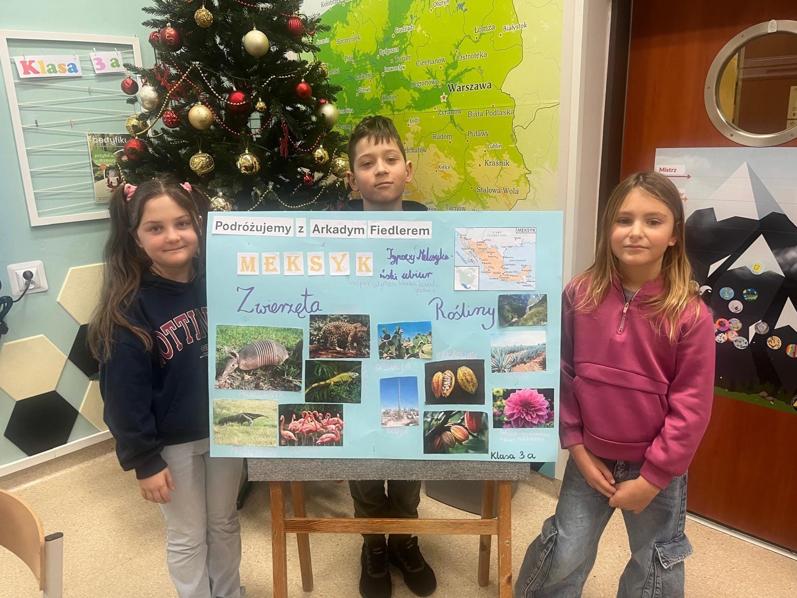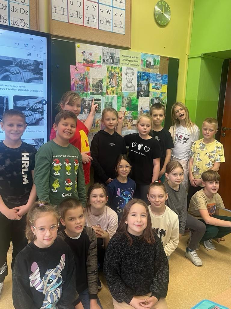 Na przełomie listopada i grudnia uczniowie klas trzecich realizowali projekt „Podróżujemy z Arkady Fiedlerem”. Dzieci poszukiwały i gromadziły informacje na temat patrona naszej szkoły, jego podróży oraz twórczości literackiej. Efektem wytężonej pracy uczniów są prezentacje multimedialne o Arkadym Fiedlerze oraz plakaty prezentujące wybrane miejsca, które odwiedził nasz patron.