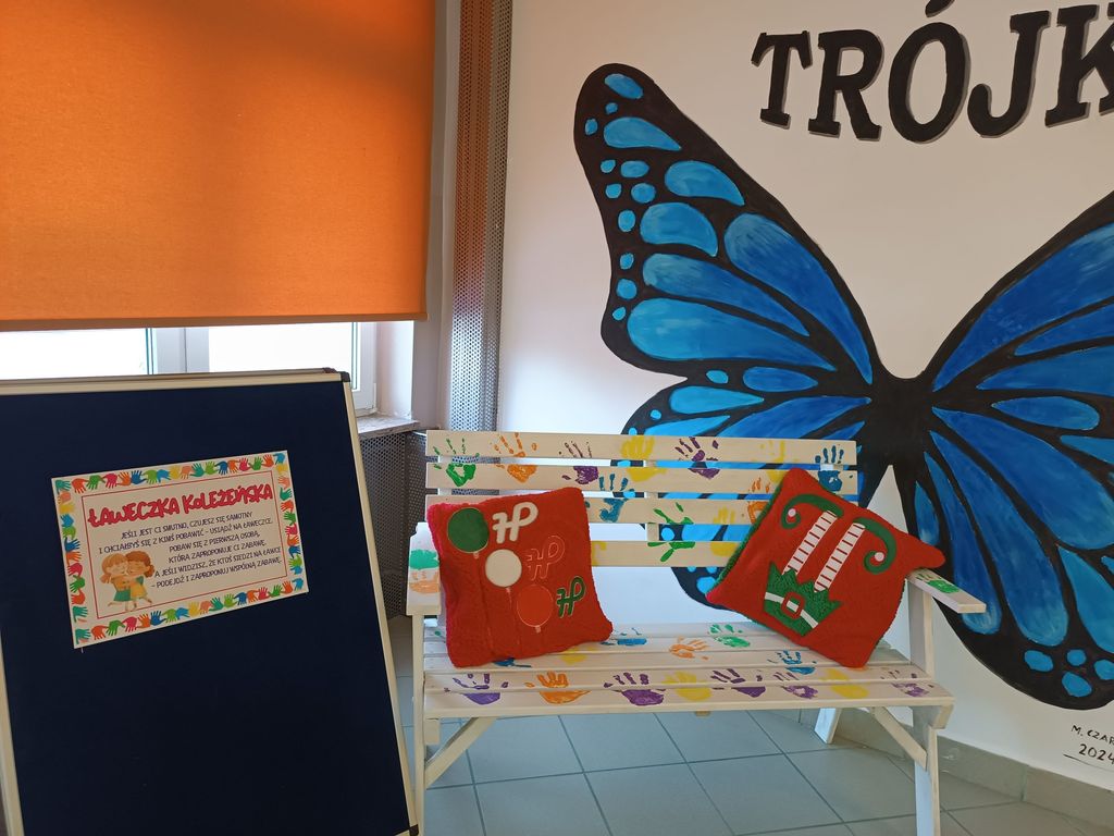 W naszej szkole, w budynku przy ul. Kominka, w ramach miesiąca życzliwości stanęły dwie "ławeczki koleżeńskie", które zostały ozdobione kolorowymi łapkami przez uczniów klas pierwszych. "Ławeczki koleżeńskie" mają uczyć empatii i wrażliwości. Mają służyć dzieciom, które czują się samotne lub nie mają pomysłu na zabawę. Siadając na ławeczce uczeń daje informację swoim kolegom, aby włączyli go do zabawy, albo usiedli obok niego i dotrzymali mu towarzystwa.