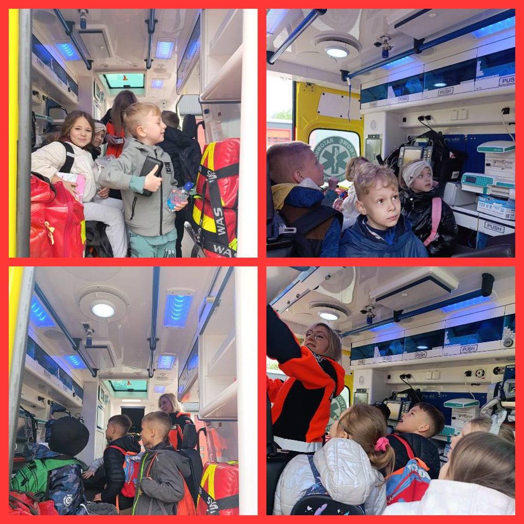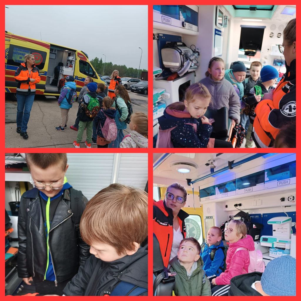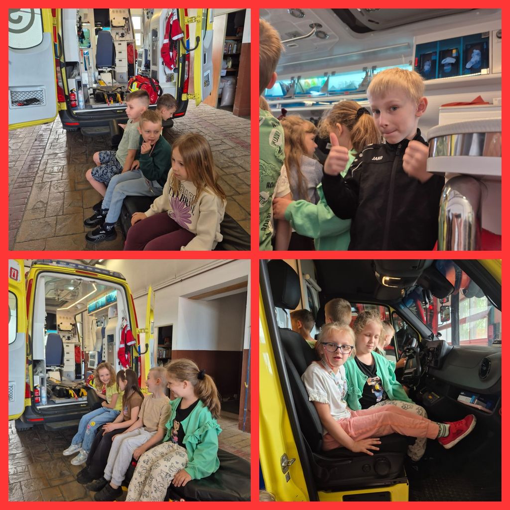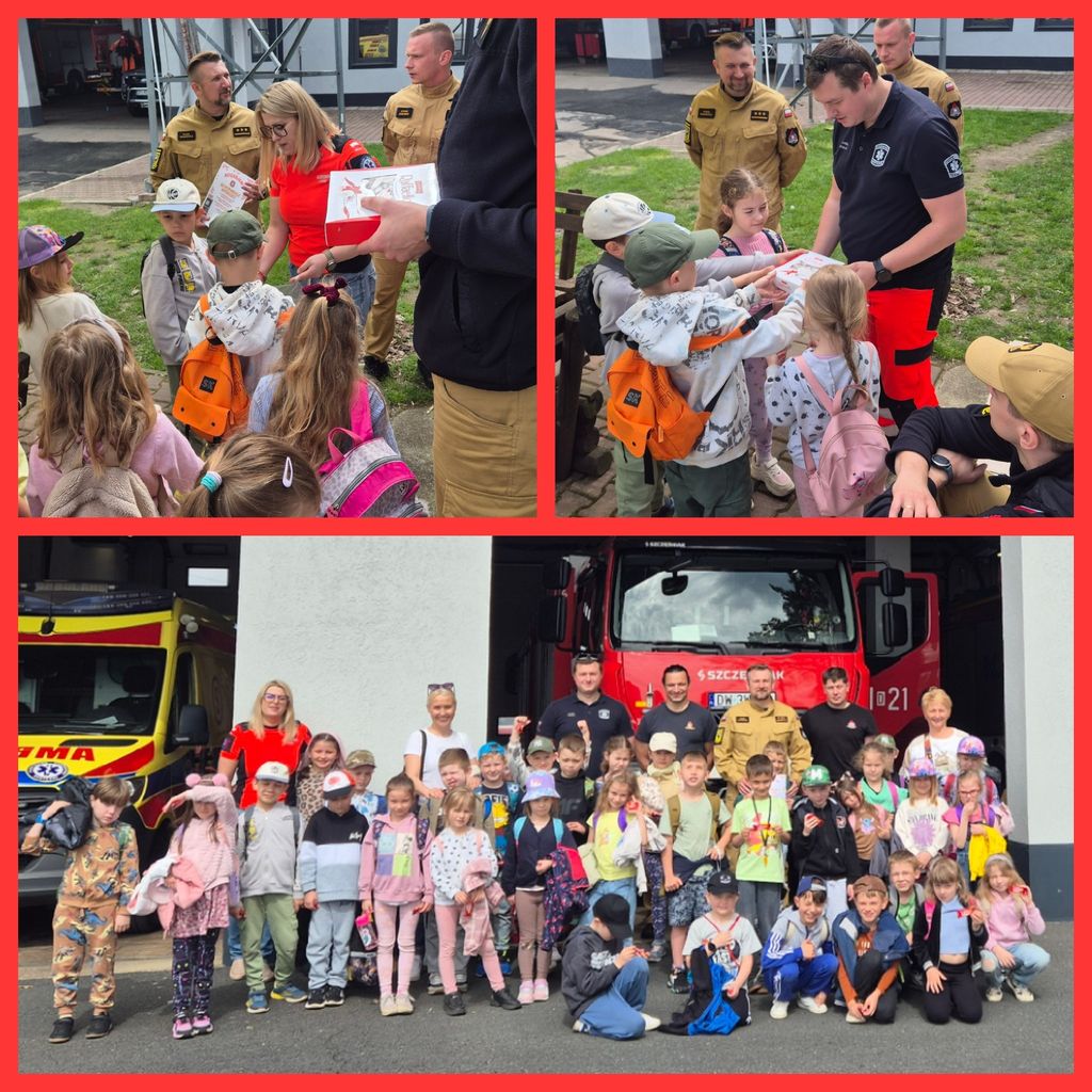 23 i 25 maja uczniowie klas pierwszych wybrali się na pieszą wycieczkę do Zespołu Ratownictwa Medycznego oraz Komendy Powiatowej Państwowej Straży Pożarnej w Polkowicach. Na miejscu dzieci zapoznały się z pracą ratownika medycznego i strażaka. Poznały również pracę dyspozytora, który przyjmuje zgłoszenia i wysyła zespoły ratownicze na miejsce zdarzenia. Tu miały możliwość wykazania się swoją wiedzą na temat znajomości numerów alarmowych oraz zgłaszania zdarzenia przez telefon. Ogromną atrakcją wycieczki było przymierzanie strażackich strojów, zjazd strażaków po ślizgu, czyli „strażackiej rurze”, a także karetka pogotowia i wóz strażacki, do których dzieci mogły wejść, zobaczyć znajdujący się w nich sprzęt, a nawet położyć się na noszach oraz użyć sygnałów dźwiękowych. Niesamowitym przeżyciem była też przejażdżka wozem strażackim oraz lanie wody ze strażackich węży. Dzieci oglądały wszystko z ogromnym entuzjazmem i wróciły z wycieczki pełne niezapomnianych wrażeń.
