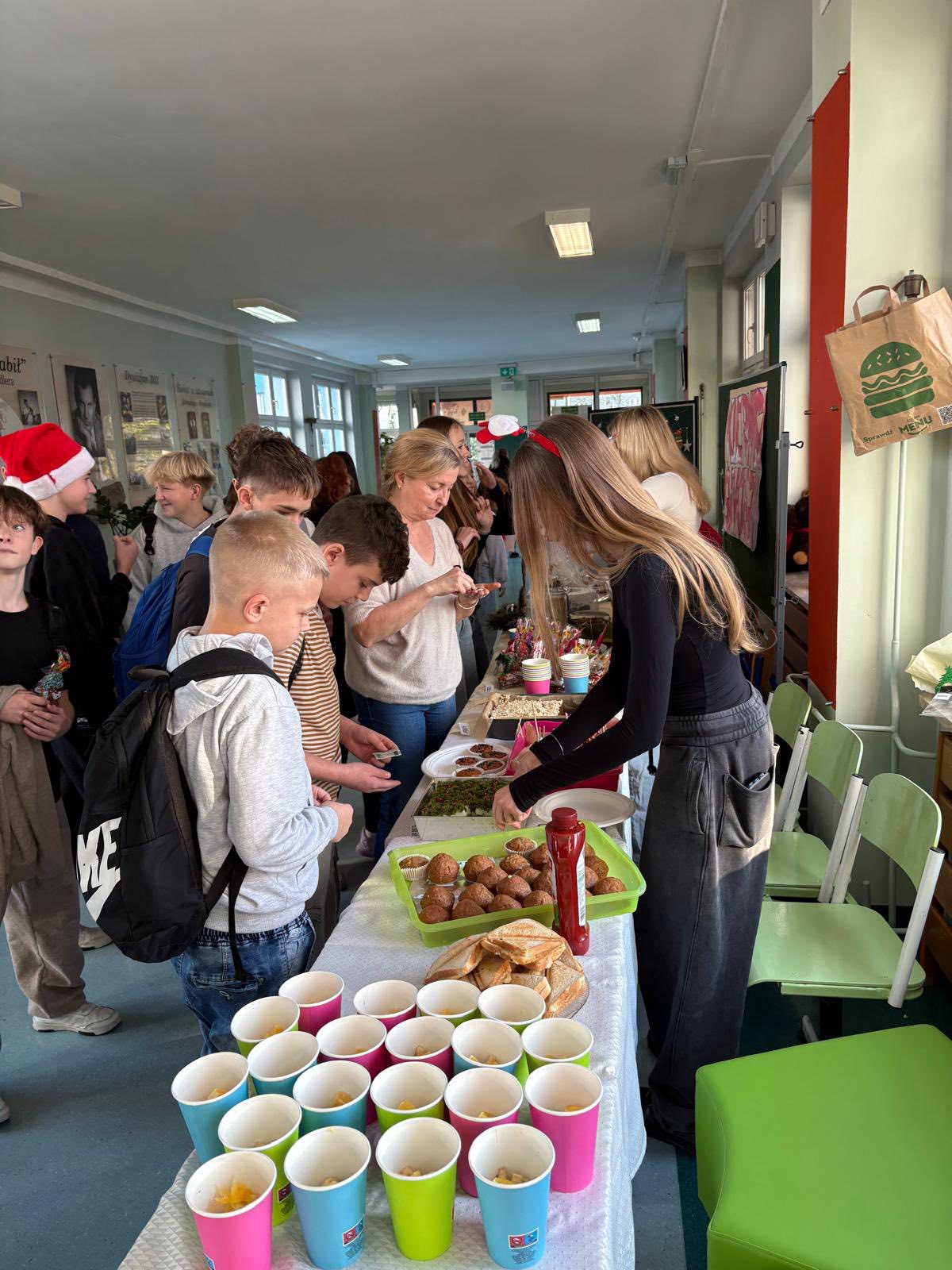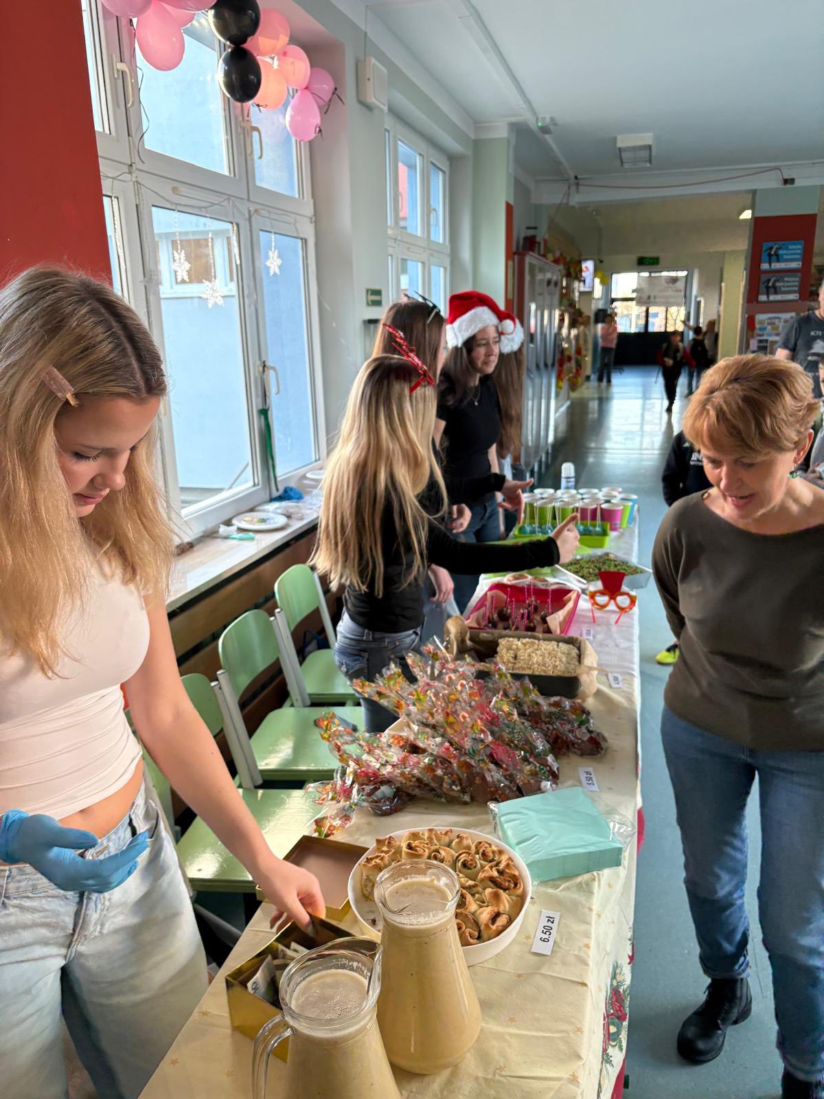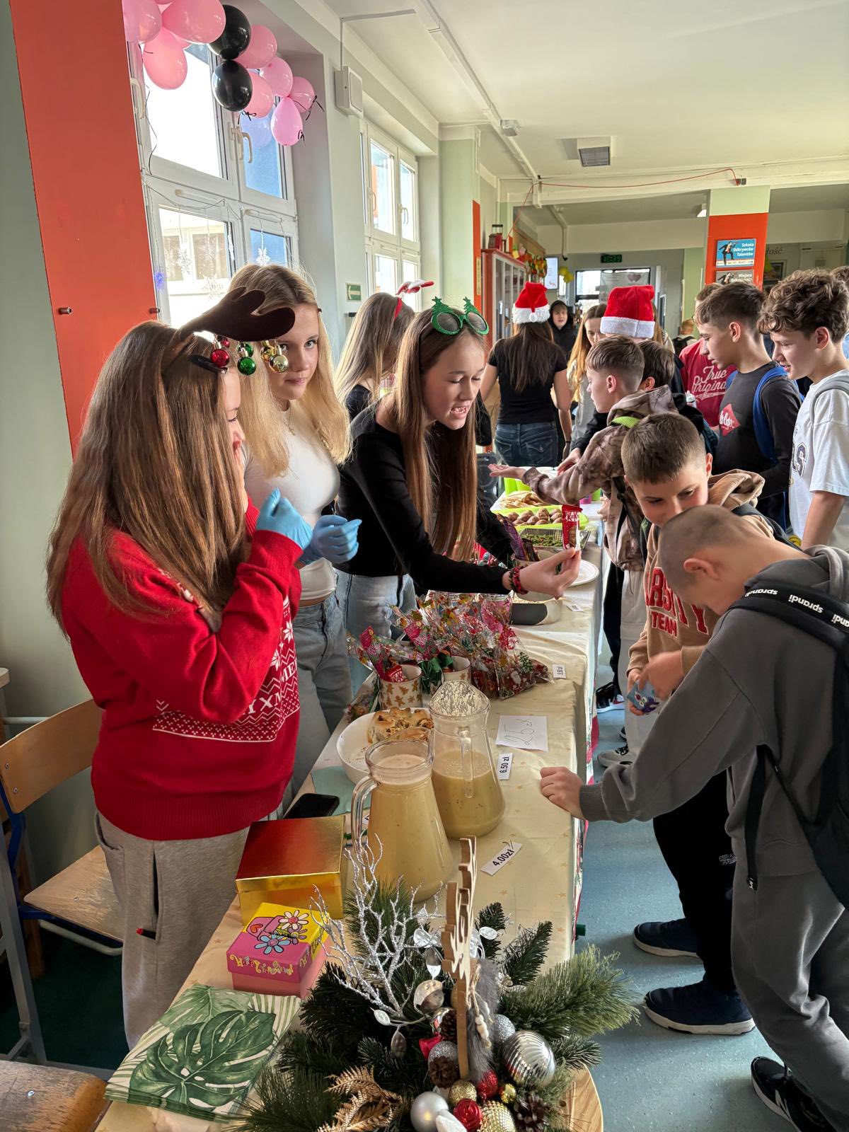 Za nami finał szkolnego kiermaszu mikołajkowego, który odbył się w szkole przy ul. Ociosowej. Wydarzenie przebiegło w radosnej, świątecznej atmosferze. Organizatorami kiermaszu były klasy: 8a, która zebrała 694,50 zł oraz 8c, która zebrała 883 zł. W sprzedaży były m.in.: babeczki, ciasteczka, koktajle. Dziękujemy wszystkim za wsparcie, zaangażowanie i każdy zakup. Razem pokazaliśmy, że potrafimy pomagać i tworzyć wyjątkowy, świąteczny klimat.