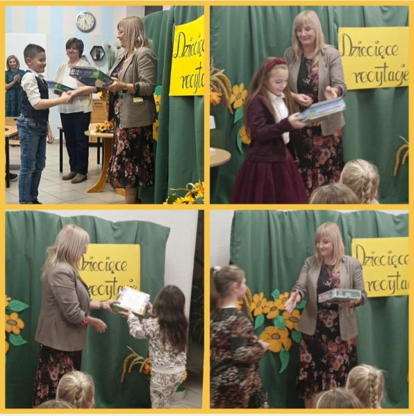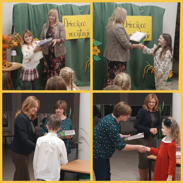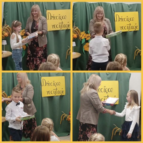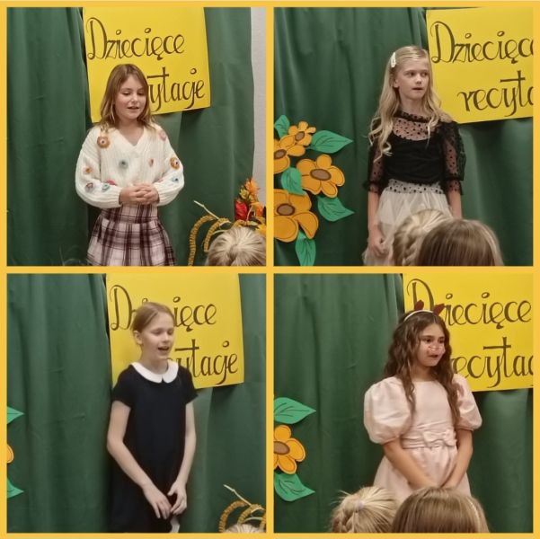 W dniach 13 i 14 listopada 2023 r. zorganizowano Szkolny Konkurs pod hasłem „Dziecięce recytacje”. Konkursowe zmagania przeprowadzono w dwóch kategoriach wiekowych: