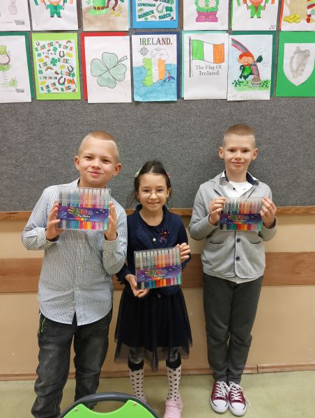 W grudniu podczas lekcji języka angielskiego uczniowie klas drugich i trzecich wzięli udział w konkursie wiedzy o Irlandii.
