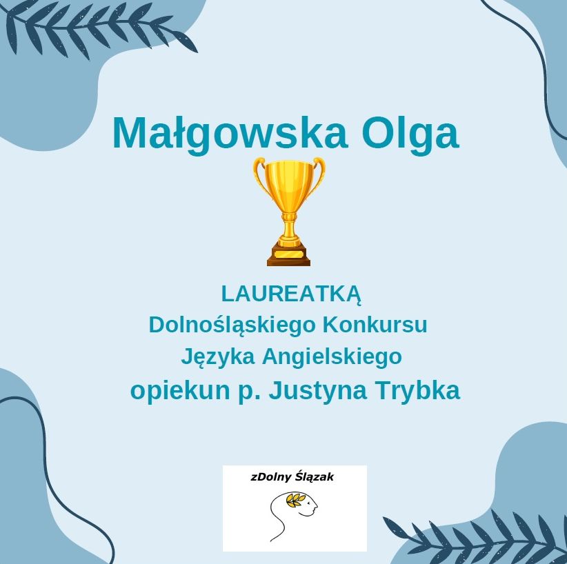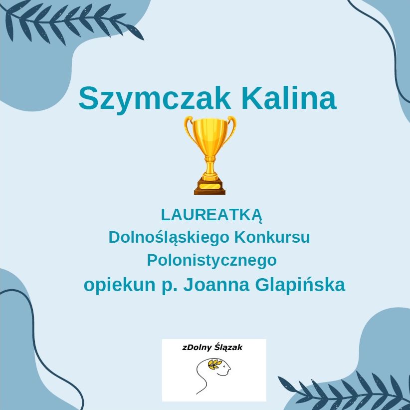 Z dumą i radością informujemy, że Kalina Szymczak z klasy 8b otrzymała tytuł LAUREATA Dolnośląskiego Konkursu Polonistycznego, Olga Małgowska z klasy 8d - tytuł LAUREATA Dolnośląskiego Konkursu Języka Angielskiego, natomiast Patryk Pawlik z klasy 7d został FINALISTĄ Dolnośląskiego Konkursu Geograficznego.