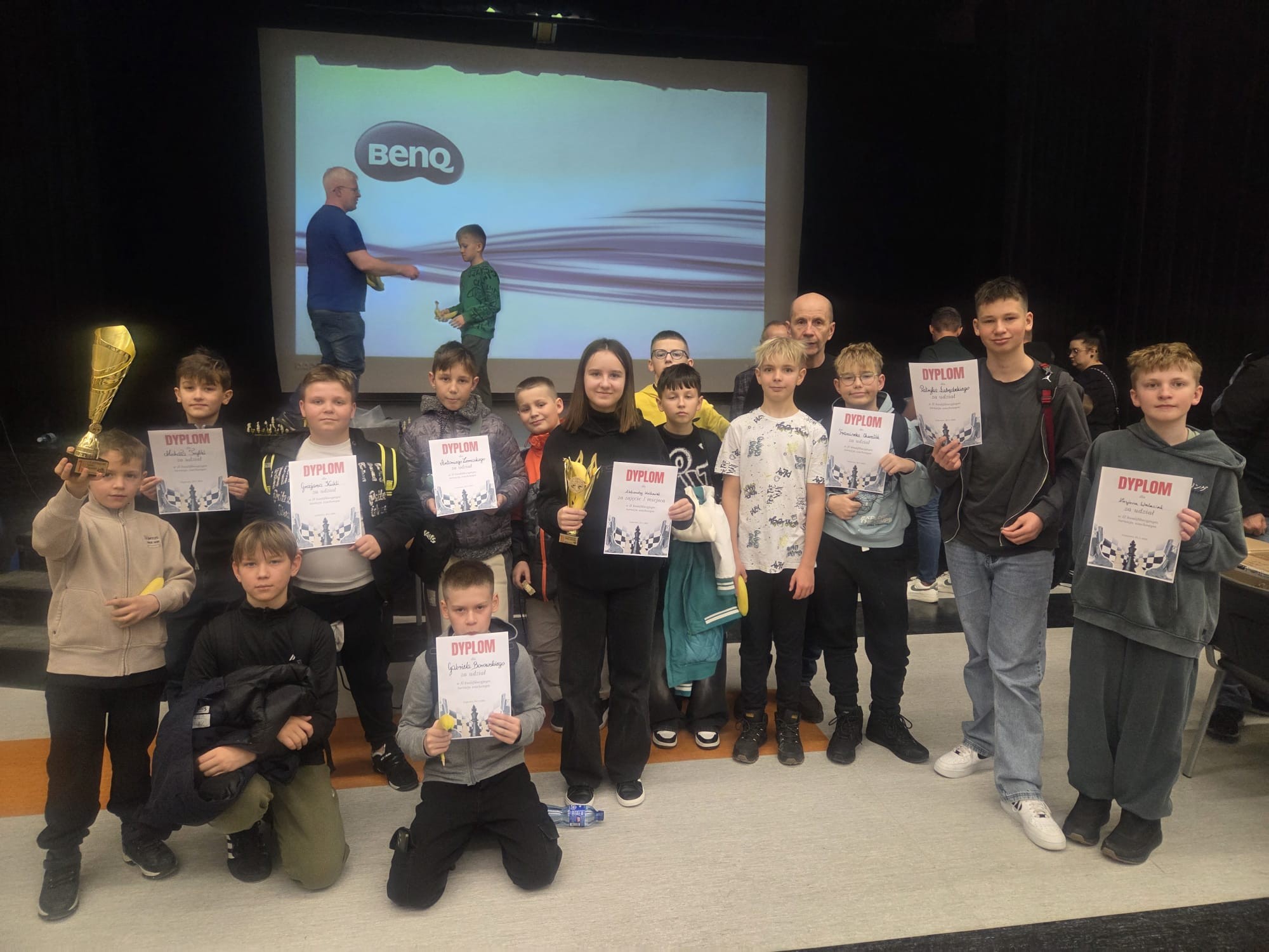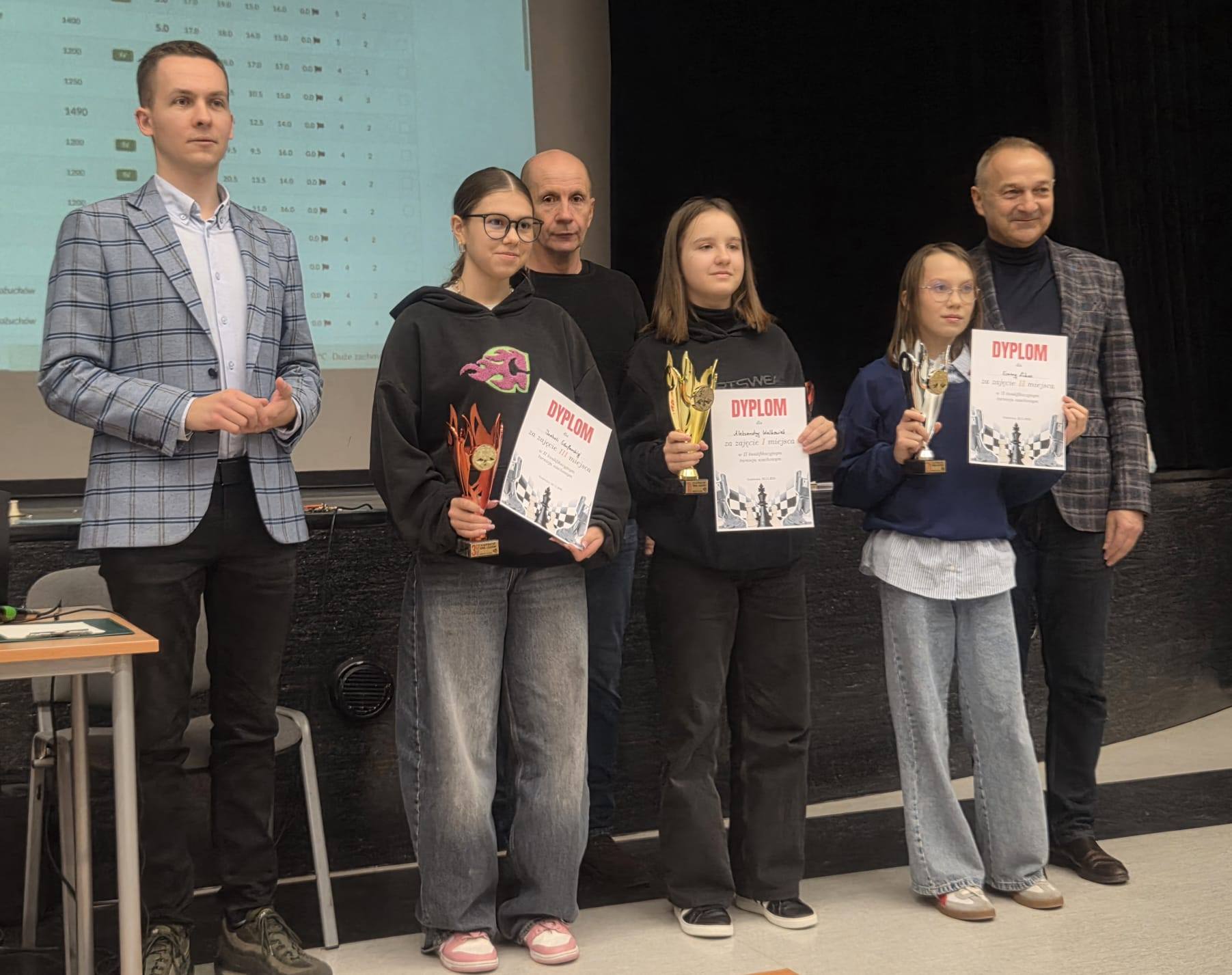 W sobotę 22 listopada w Grębocicach odbył się Turniej o Kategorie Szachowe zorganizowany przez pana Pawła Szadyko. Wzięło w nim udział 17 uczniów naszej szkoły. Gratulujemy Aleksandrze Walkowiak, która uzyskała III kategorię dziewcząt oraz Myronowi Kyrychenko, który zdobył IV kategorię. Ola zajęła też I miejsce wśród dziewcząt klas 4-6, natomiast wśród chłopców klas 1-3 niepokonany okazał się Karol Kołodziejczak. Serdecznie gratulujemy zwycięzcom. Wszystkim młodym szachistom życzymy jak najlepszych wyników.