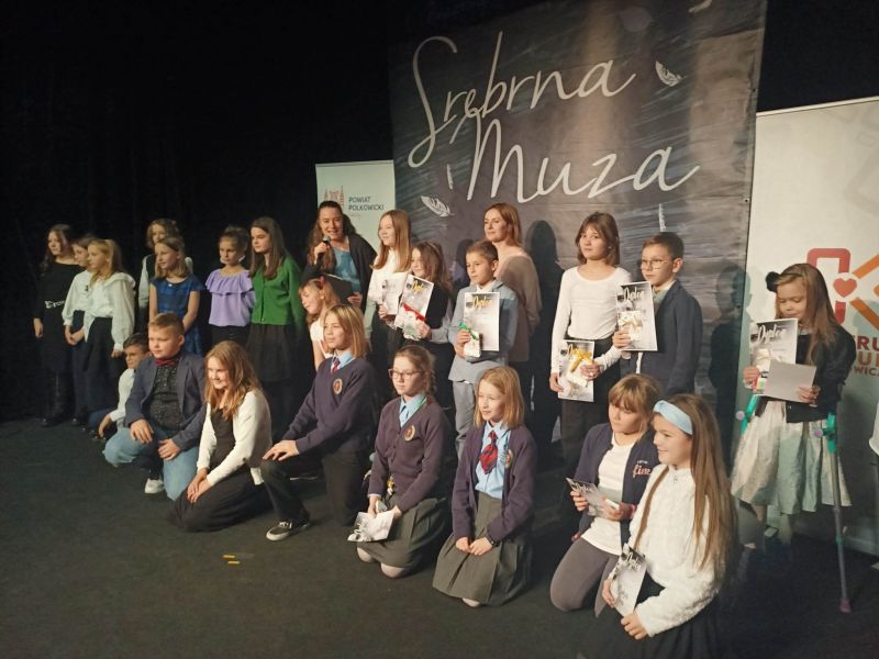 23 listopada odbył się XXVI Powiatowy Konkurs Recytatorski ,,Srebrna Muza”. W kategorii klas 4-6 nasza uczennica z klasy 6 c – Magdalena Jasińska – zajęła III miejsce, a w starszej kategorii również III miejsce zajęła Lena Domaros z klasy 8 c. Nagrodzonym dziewczętom i wszystkim uczestnikom gratulujemy!