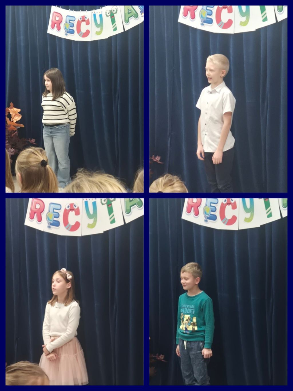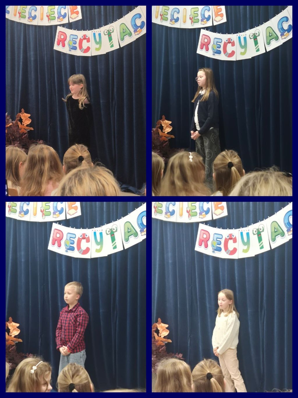 W dniach 17 i 18 listopada zorganizowano Szkolny Konkurs „Dziecięce recytacje”. Konkursowe zmagania przeprowadzono w dwóch kategoriach wiekowych: 17 listopada zaprezentowało się 22 uczniów klas 2-3, 18 listopada wzięło udział 18 uczniów klas 0-1.