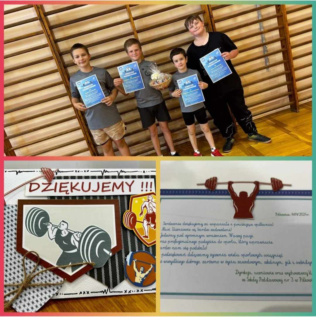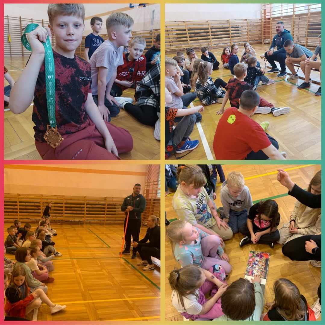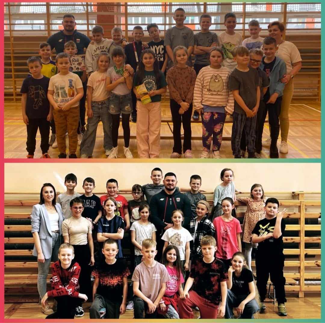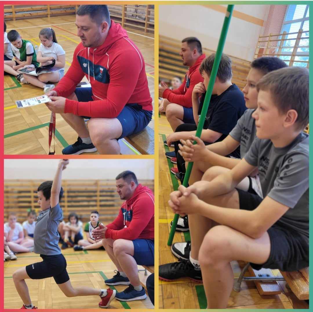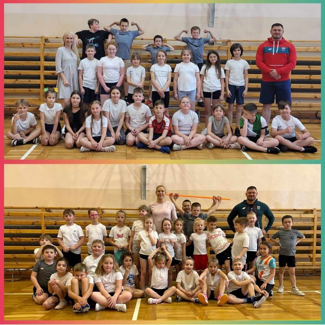 Z okazji ROKU POLSKICH OLIMPIJCZYKÓW wszystkie klasy 0-3 spotkały się z naszym polkowickim olimpijczykiem - sztangistą – Arkadiuszem Michalskim, który jest również absolwentem naszej szkoły. Pan Arek dwukrotnie brał udział w Igrzyskach Olimpijskich: w Rio de Janeiro i w Tokio. Podczas spotkań, w bardzo ciekawy sposób opowiadał dzieciom, jak długo i ciężko trzeba trenować oraz jakie warunki trzeba spełnić, aby móc wziąć udział w Olimpiadzie. Poruszył ponadto bardzo ważny temat radzenia sobie z przegraną. Wraz z Panem Arkiem, udział w spotkaniach brali również zawodnicy KPC Górnik Polkowice: Pani Weronika Florian oraz Fabian Frąckowiak, Borys Rekieć, Daniel Abramowicz i Jan Czarny. Podczas zajęć dzieci poznały technikę podnoszenia ciężarów, pod okiem zawodników mogły spróbować swoich sił "dźwigając" tyczki oraz zmierzyć się w zawodach "brzuszkowych". To były bardzo wartościowe spotkania, które na długo pozostaną w naszej pamięci.