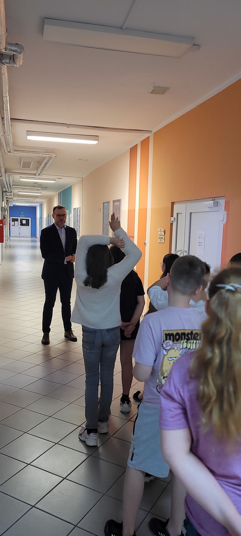 19 czerwca, odwiedził nas kolejny absolwent Szkoły Podstawowej nr 3, Pan Sebastian Sypko – wiceburmistrz Polkowic. Spotkanie miało charakter spaceru. Uczniowie, pod okiem wychowawcy i Pani Dyrektor Adriany Ciupki oprowadzili gościa po szkole. Pan Sebastian opowiadał o swoich szkolnych latach, wspominał nauczycieli, pokazał też dzieciom, gdzie były różne szkolne pracownie, a także biblioteka, czytelnia, świetlica, siłownia, czy harcówka... Okazało się, że były one w zupełnie innych miejscach, niż teraz... a niektórych z tych miejsc już nie ma... Dzieci z zainteresowaniem słuchały ciekawych opowieści i próbowały wyobrażać sobie, jak nasza szkoła wyglądała dawniej... Był to bardzo sentymentalny spacer.