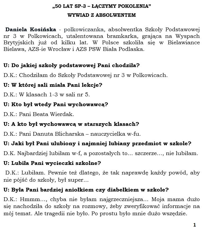 WYWIAD Z ABSOLWENTEM - DANIELA KOSIŃSKA