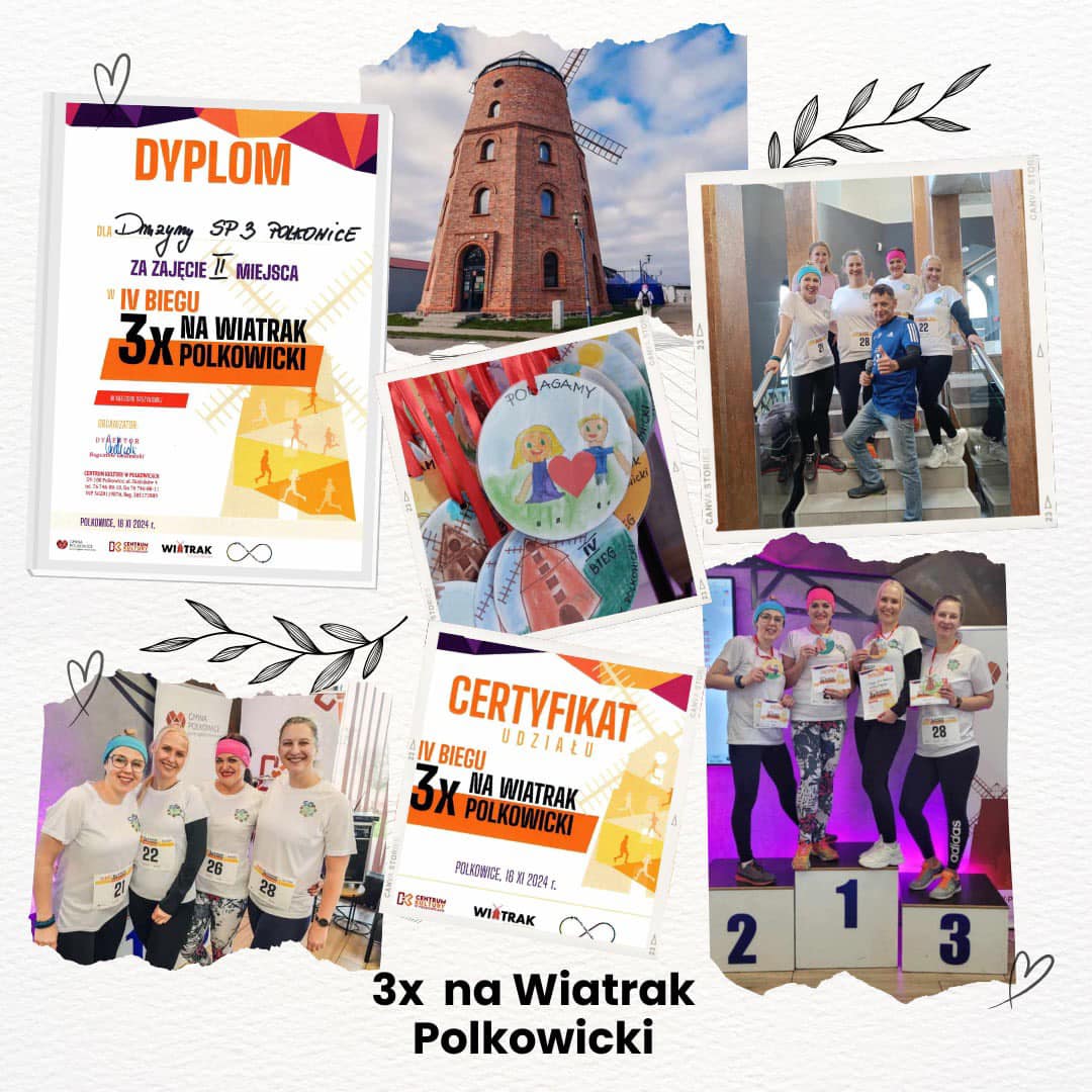 Ogromne gratulacje dla pań: Amelii Grodeckiej, Izabeli Flisiewicz, Agaty Kusiak i Urszuli Drabek-Mazur, które reprezentowały naszą szkołę i wykazały się ogromną determinacją wbiegając 3 razy na Polkowicki Wiatrak. Cały dochód z imprezy zostanie przeznaczony dla Przedszkola Miejskiego im. Jana Pawła II w Stroniu Śląskim, które ucierpiało w czasie powodzi. Wielkie podziękowania dla organizatorów - Centrum Kultury w Polkowicach - za fantastyczną atmosferę i dla wszystkich uczestników - za ogrom radości.
