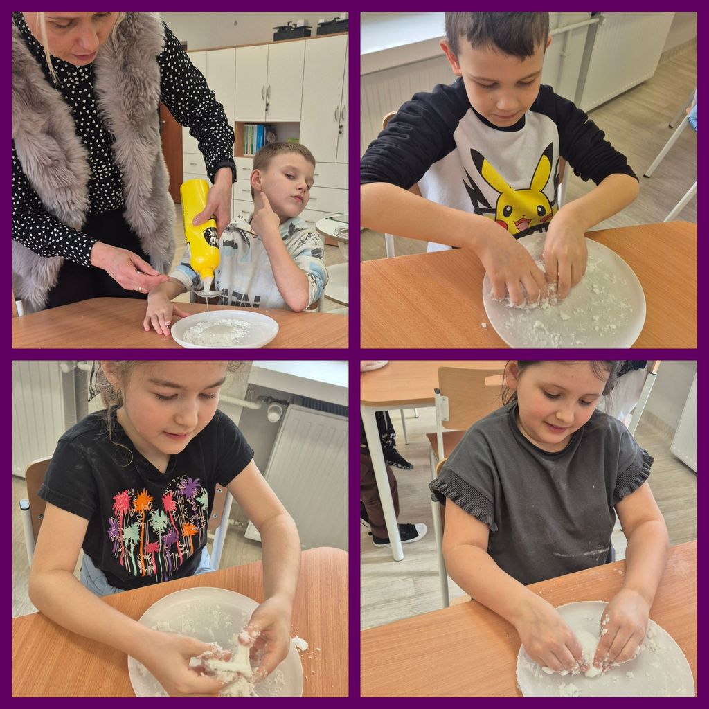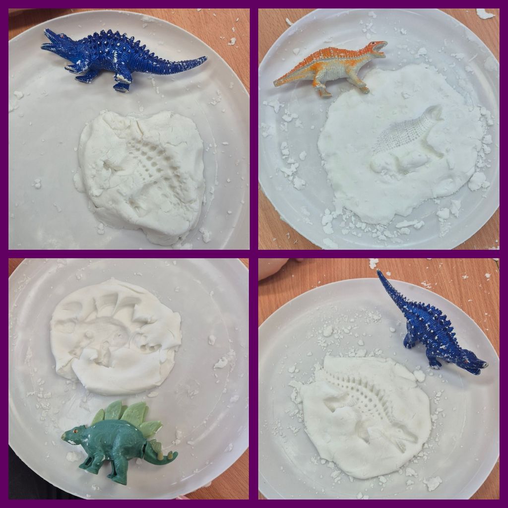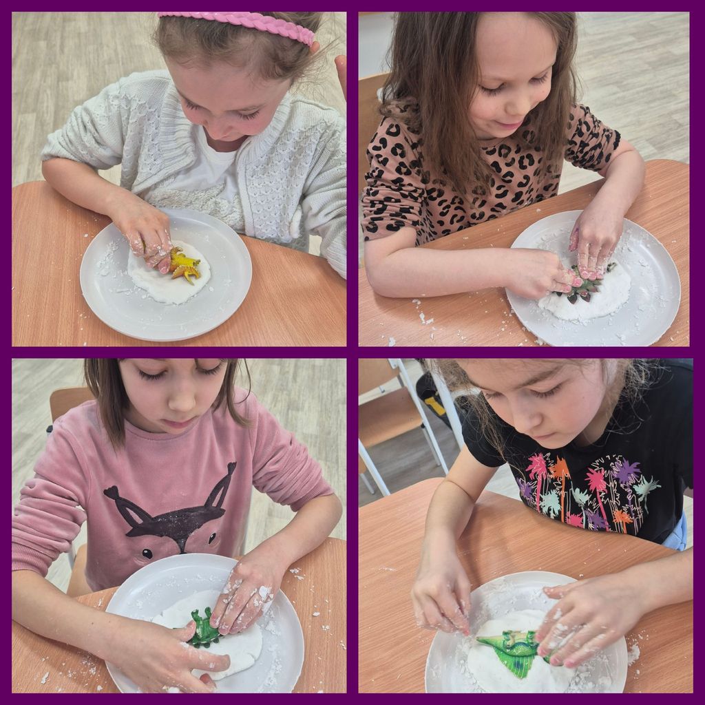 26 lutego przypada nietypowe święto - Dzień Dinozaura. Nasi najmłodsi uczniowie z radością i ogromną ciekawością poznawali historię dinozaurów, ich wygląd, to, czym się żywiły oraz jak wyginęły. Dzieci rozpoznawały i podawały nazwy dinozaurów - były tyranozaury, triceratopsy, diplodoki, pterodaktyle i sporo innych. Uczniowie dzielili dinozaury na większe i mniejsze, mięsożerne i roślinożerne. Brali również udział w różnych konkurencjach np. tropieniu dinozaura po właściwych śladach, odgadywaniu zagadek oraz w zabawach ruchowo – naśladowczych. Dzieci obejrzały również film edukacyjny, pełen wielu ciekawostek o dinozaurach. Dużo radości wywołały prace plastyczno - techniczne. Było malowanie na dużym formacie, a także wykonanie masy aksamitnej, w której dzieci odbijały figurki dinozaurów, tworząc piękne skamieliny. Był to szczególny dzień, pełen radosnych wrażeń
