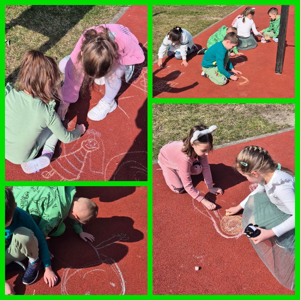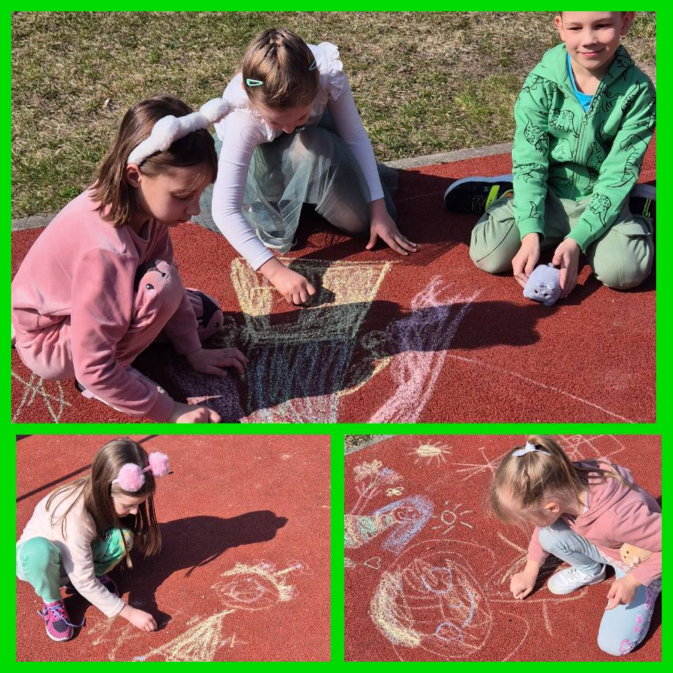 Najmłodsi uczniowie w różnych sposób powitali Panią Wiosnę. Korzystając z pięknej wiosennej pogody, większość spędziła czas na spacerach oraz zabawach ruchowo-zręcznościowych na miejskich placach zabaw, niektórzy rysowali kredą portrety Pani Wiosny, byli też tacy, którzy wykonali dzieła pt." W marcu, jak w garncu" i "upichcili" smaczne i bardzo kolorowe gofry owocowe. Byli też i tacy, którzy spacerowali z piękną Marzanną i odbyli praktyczne szkolenie z instruktorem działkowym RODOS "Relaks", podczas którego dowiedzieli się, jak przygotować ogródek na nadejście wiosny. Wiosno przybywaj!!!