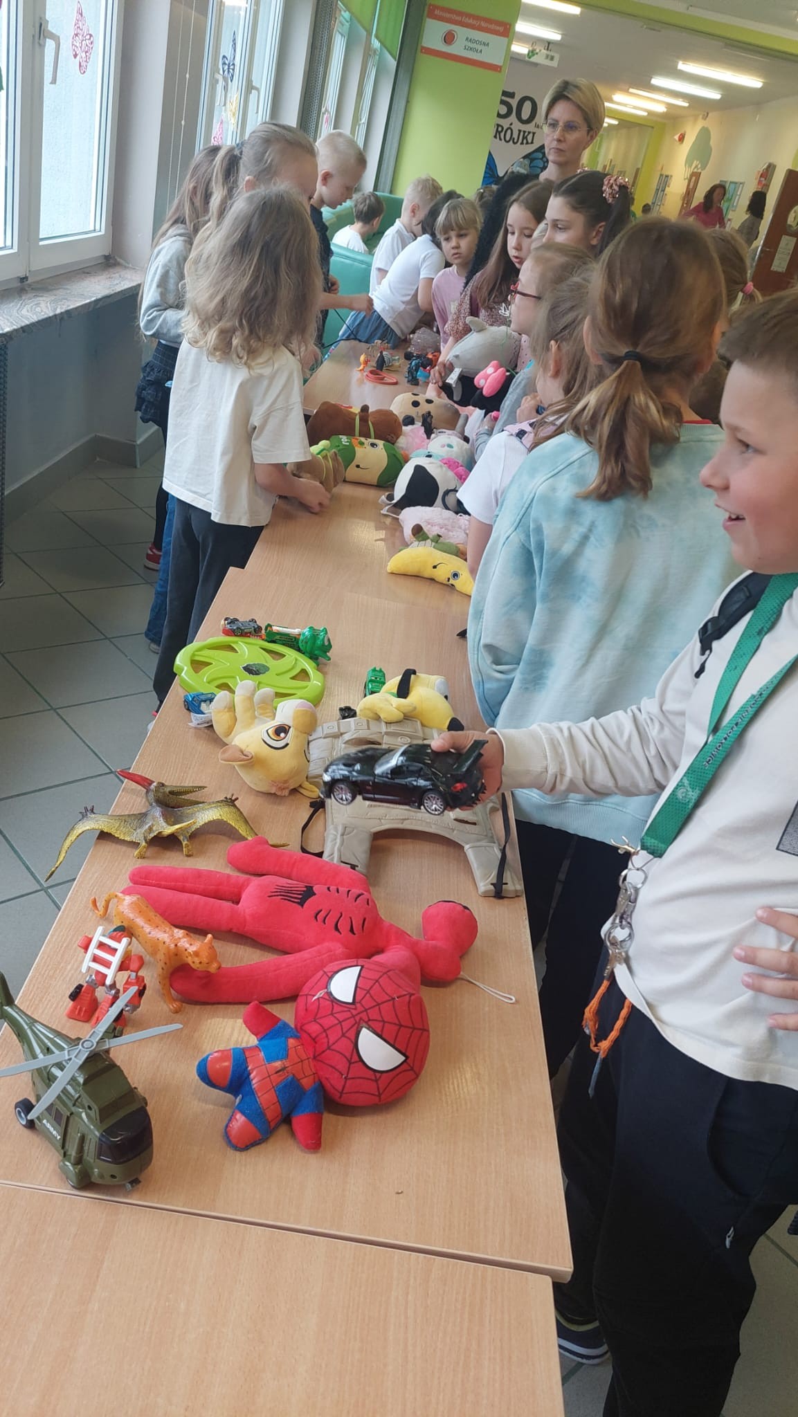 Giełda wymiany, to już tradycyjna akcja w nasze szkole. W kwietniu obchodzony jest Międzynarodowy Dzień Ziemi. Z tej okazji podejmowanych jest wiele działań mających na celu uświadomienie dzieciom potrzeby dbania o naszą planetę Ziemię. Nasza giełda była jednym z nich. Przez trzy dni uczniowie klas 1-3 i, po raz pierwszy!, przedszkolaki, mieli okazję wymieniać się z rówieśnikami zabawkami, grami, książkami, które przestały już im się podobać, a mogą sprawić radość komuś innemu. A wszystko to w myśl hasła: "NIE KUPUJ - WYMIEŃ SIĘ". Akcja za każdym razem cieszy się bardzo dużym zainteresowaniem dzieci.