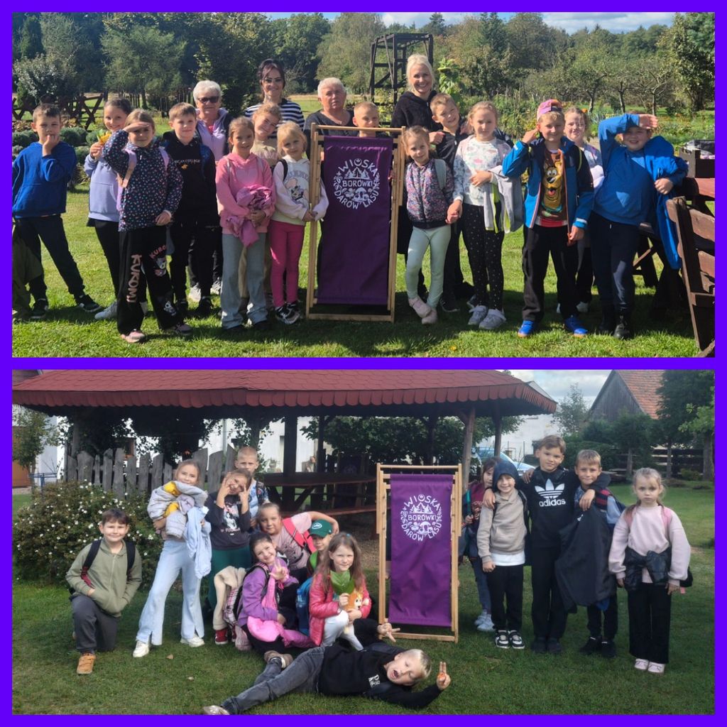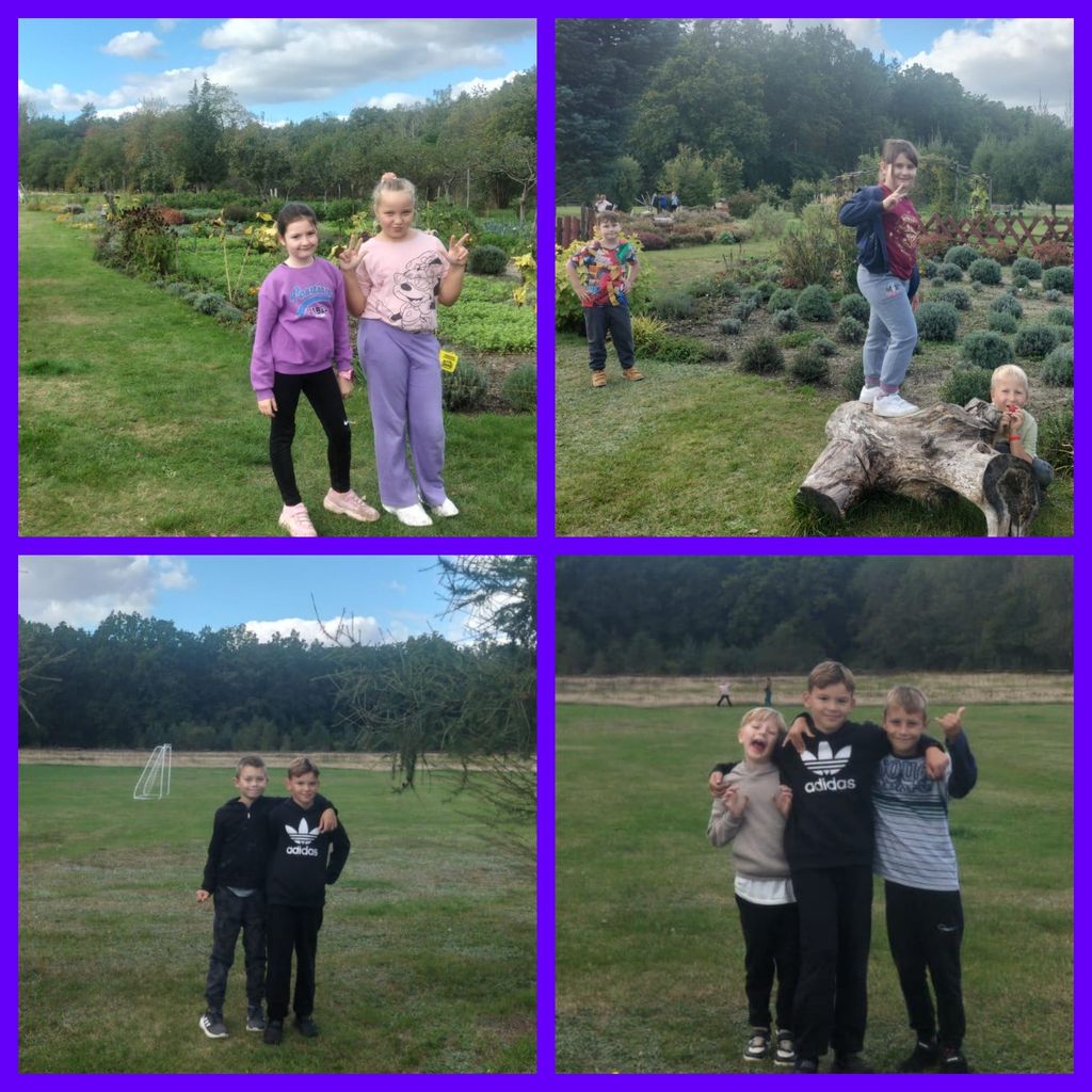 23 września klasy 2b i 2d wybrały się na edukacyjno – rekreacyjną wycieczkę do Wrzosowej Krainy w Borówkach, prawdziwej oazy ciszy i spokoju. Dzieci, wraz z gospodyniami, wybrały się do pięknego jesiennego ogrodu, gdzie wieloma zmysłami poznawały rosnące tam zioła i oglądały jesienne rośliny. Podczas warsztatów samodzielnie stworzyły wypełnione ziołami, cudnie pachnące olejki do kąpieli i masażu. Był też czas na radosne brykanie po ogromnym zielonym terenie, a po nim kiełbaski z ogniska, które tego dnia, w tym urokliwym miejscu, smakowały wręcz wybornie. Wycieczka była dla wszystkich pełna niesamowitych i niezapomnianych wrażeń.