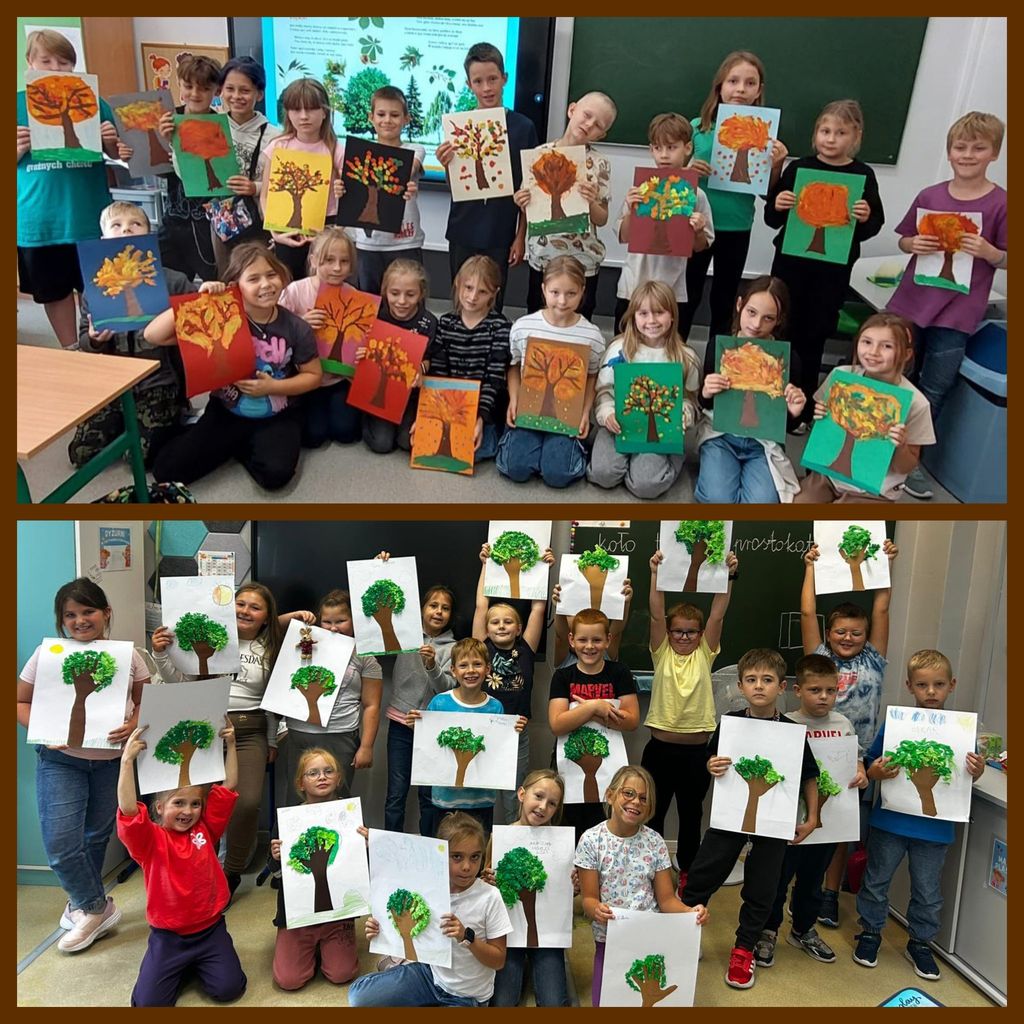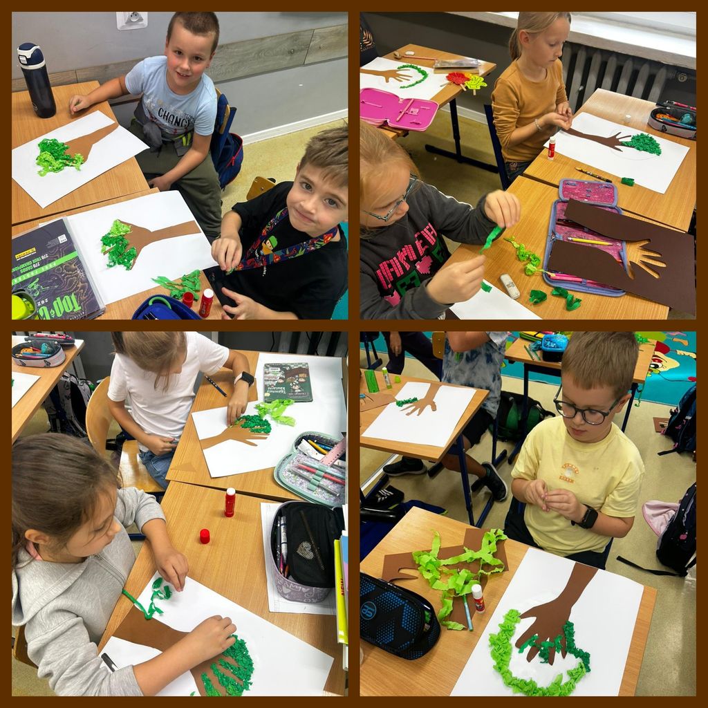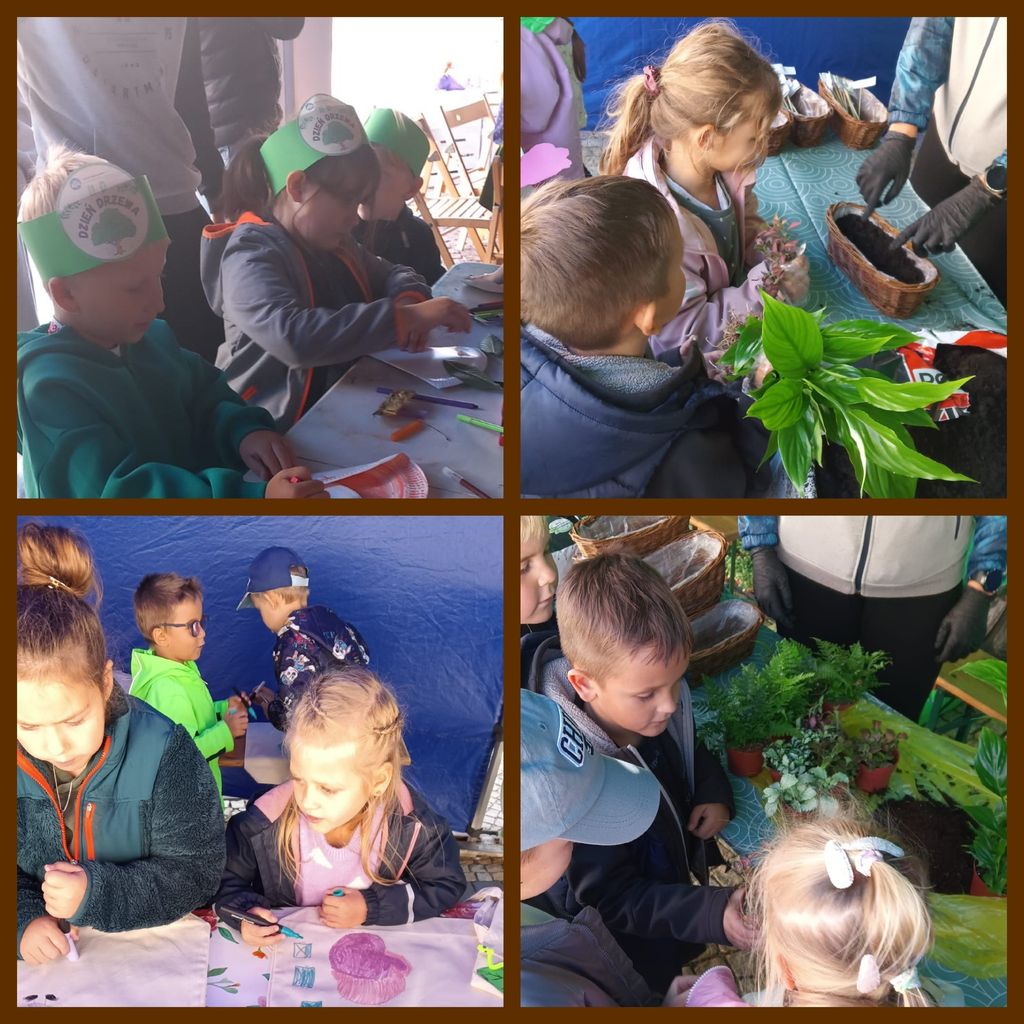Z okazji Święta Drzewa, nasi najmłodsi uczniowie uczestniczyli w różnorodnych aktywnościach związanych z tematyką drzew. Kilka uczennic z klasy 3c wzięło udział w wyjątkowych warsztatach przyrodniczych pt. "Las w słoiku", zorganizowanych przez Szkołę Podstawową nr 4. Przedszkolaki oraz uczniowie klasy 2d uczestniczyli w Polkowickim Dniu Drzewa, podczas którego na Rynku wzięli udział w przeróżnych działaniach ekologicznych, m. in. tworzyli różne ekocuda z liści i szyszek, malowali ekotorby, kamienie i magnetyczne kolorowanki, brali udział w warsztatach „Tajemnica natury w papierze”, a także korzystali z fotobudki, dmuchańców i koła fortuny. Pozostali uczniowie wzięli udział w szkolnych zajęciach związanych ze Świętem Drzewa. Wszyscy wysłuchali w klasach ciekawych prelekcji o drzewach i ich budowie, a także o warstwach lasu oraz ogromnym znaczeniu lasów dla życia na Ziemi. W tym dniu dzieci kodowały drzewa oraz przedstawiały je w wielu technikach plastycznych, dzięki czemu w klasach powstały piękne galerie. To był dzień pełen wiedzy, inspiracji i radości!