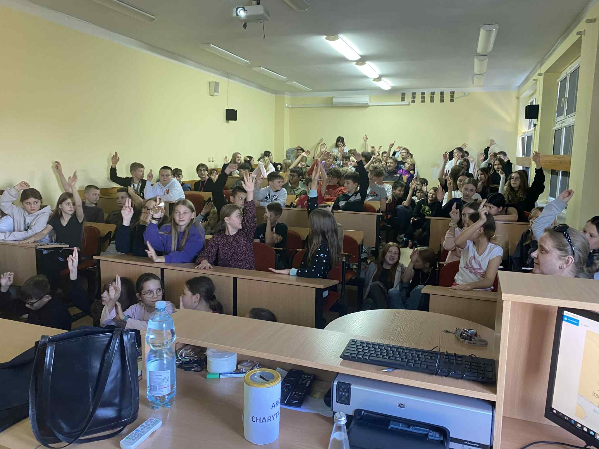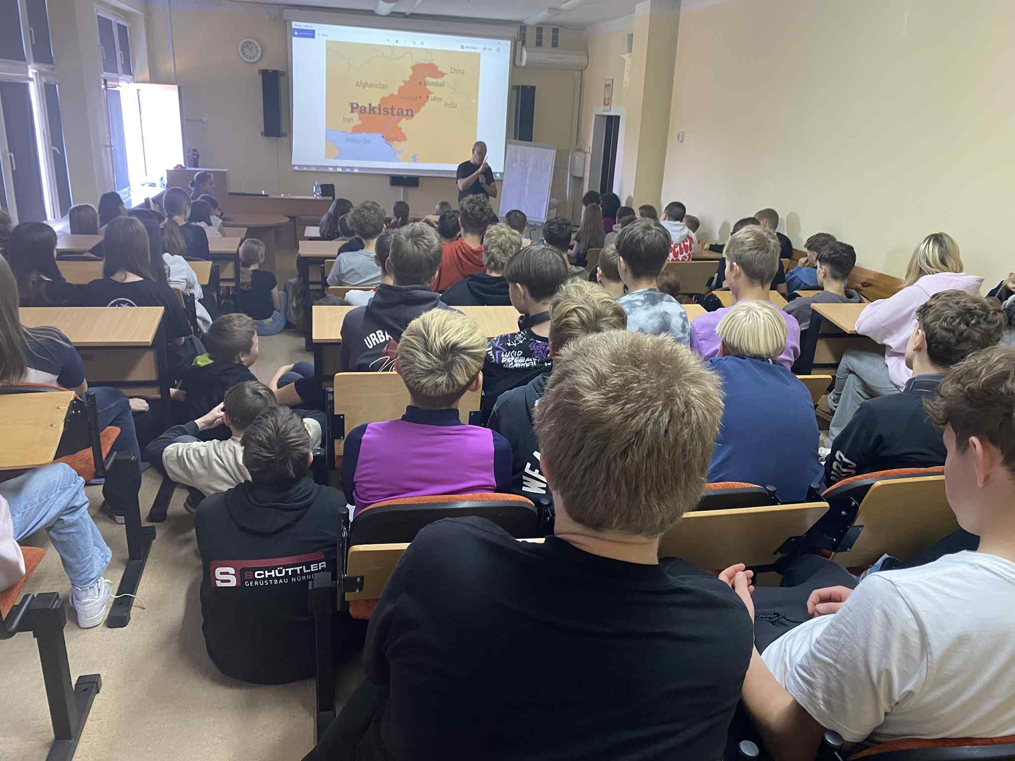 20 października, w ramach projektu z wiedzy o społeczeństwie „Dotykamy ręką świat”, odwiedził nas misjonarz - prezes Fundacji „Wszystko Jest Możliwe”, Pan Maciej Strzyżewski. Młodzież została zabrana w wirtualną podróż do Pakistanu. Oprócz ciekawostek kulturowych, uczniowie dowiedzieli się o ubóstwie tego kraju, o sytuacji chrześcijan prześladowanych przez muzułmanów oraz o niewolniczej przymusowej pracy całych rodzin w fabrykach cegieł. Fundacja naszego gościa działa tam charytatywnie, karmi głodnych, otwiera szkoły dla dzieci oraz wykupuje całe rodziny z niewolniczej pracy. Uczniowie byli mocno poruszeni tym przekazem i chętni do wszelkiej pomocy dla ich rówieśników w Pakistanie.