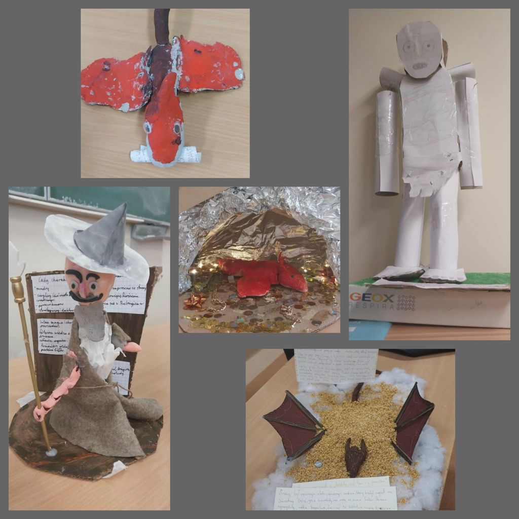 Na lekcjach języka polskiego klasy 6b i 6c pracowały metodą projektu. Wykonały wybraną postać, wraz z opisem, z lektury "Hobbit, czyli tam i z powrotem" J.R.R. Tolkiena. A może Wy rozpoznacie bohaterów?