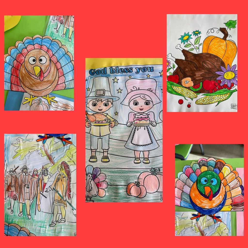 27 listopada w Stanach Zjednoczonych obchodzone jest Święto Dziękczynienia, dlatego podczas zajęć języka angielskiego w klasach 1–3 odbyła się specjalna lekcja kulturowa. Uczniowie obejrzeli krótki film edukacyjny przedstawiający historię i tradycje związane z Thanksgiving. Następnie wzięli udział w quizie, w którym odpowiadali na pytania dotyczące treści filmu, m.in.: Kim byli Purytanie?, Jak nazywają się rdzenni mieszkańcy Ameryki?, Jak nazywał się statek, na którym Purytanie przypłynęli do Ameryki?, Kiedy Amerykanie obchodzą Święto Dziękczynienia? Jaka potrawa jest najbardziej znana na świątecznym stole? Po quizie uczniowie tworzyli plansze dziękczynienia – na papierowych serduszkach zapisywali po angielsku, za co są wdzięczni. Na zakończenie zajęć dzieci kolorowały tematyczne ilustracje.