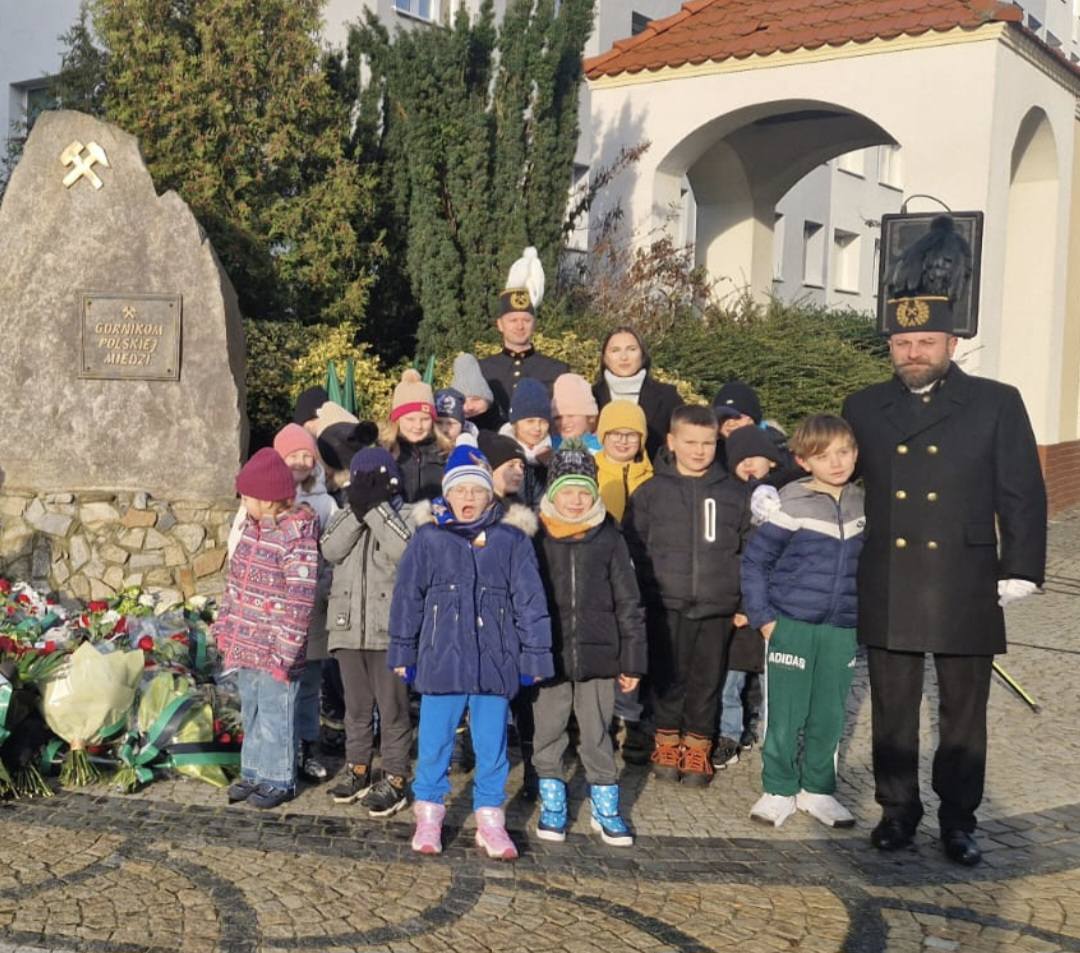 4 grudnia, uczniowie klas drugich, wraz z Panią Dyrektor Adrianą Ciupką, podczas uroczystości barbórkowych z udziałem orkiestry górniczej, złożyli kwiaty i zapalili znicze pod pomnikiem "Górnikom Polskiej Miedzi".