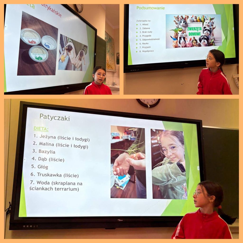 Uczniowie klas czwartych świetnie spisali się na dzisiejszej lekcji przyrody! Jula, Maja i Kamil samodzielnie przygotowali prezentacje o swoich domowych pupilach. Z ogromnym zaangażowaniem opowiadali o tym, jak dbają o swoich małych przyjaciół, a cała klasa z zainteresowaniem słuchała i zadawała pytania. Brawo dla naszych młodych przyrodników!