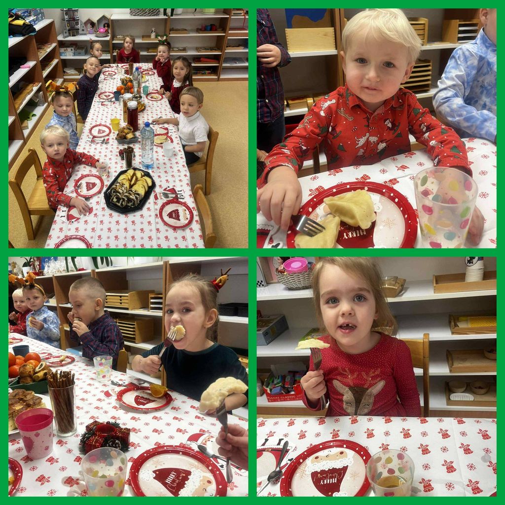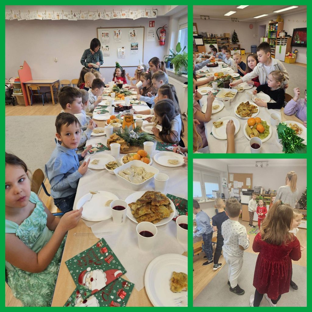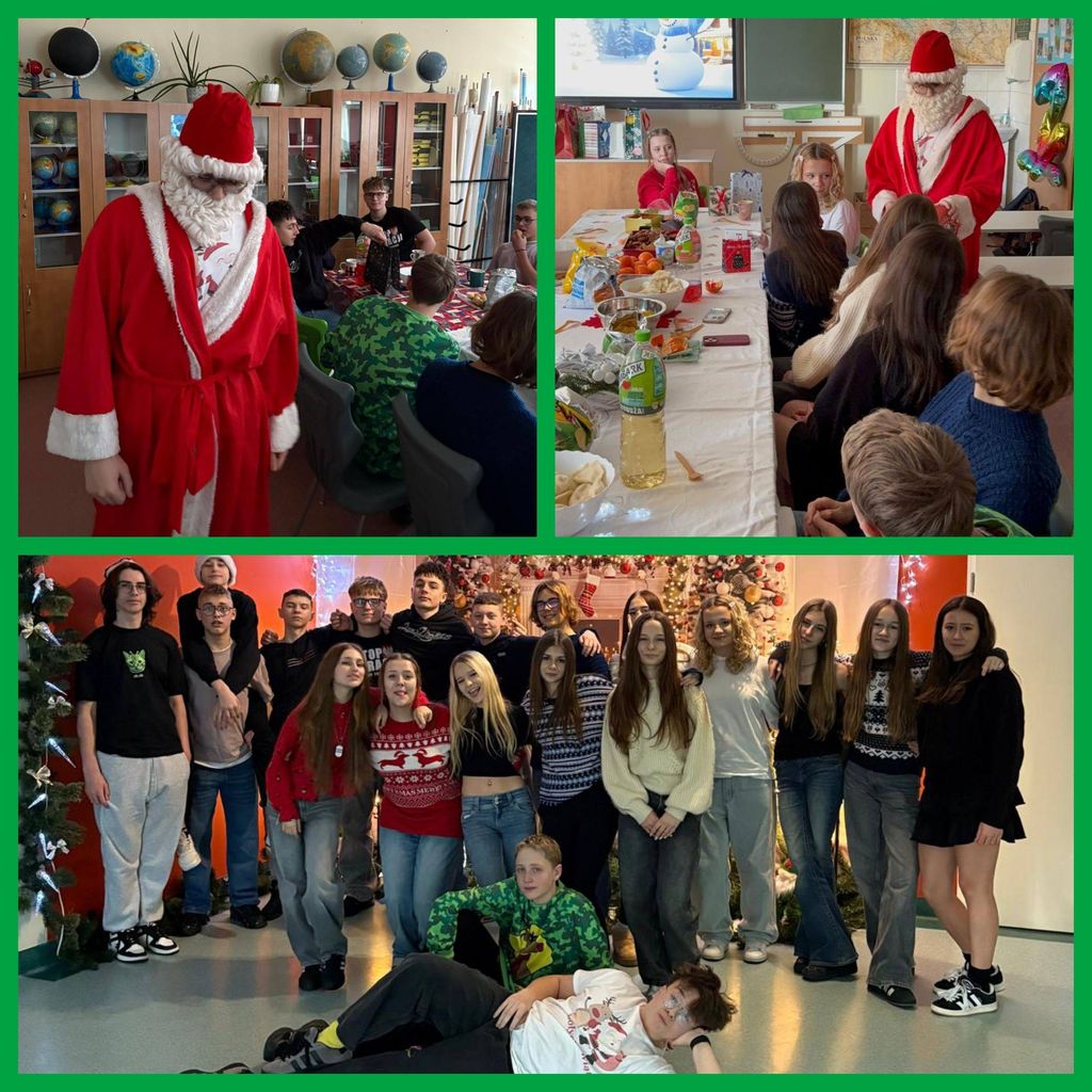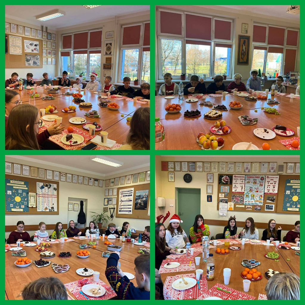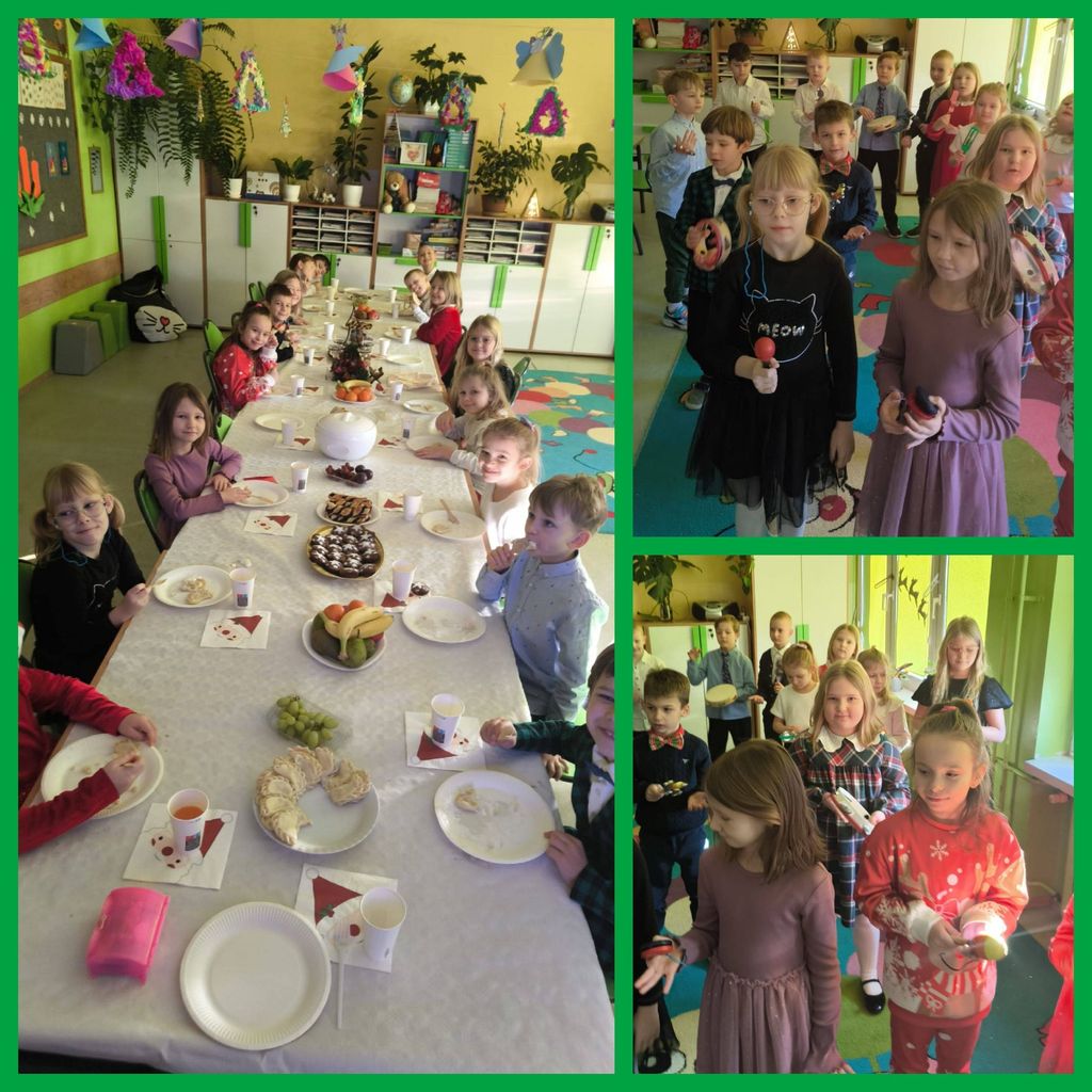 19 grudnia we wszystkich klasach naszej szkoły odbyły się klasowe wigilie, które wprowadziły uczniów oraz nauczycieli w świąteczny nastrój i zbliżyły do siebie całą społeczność klasową. Wigilie rozpoczęło wspólne dzielenie się opłatkiem, co było momentem szczególnej serdeczności. Wszyscy składali sobie nawzajem życzenia zdrowia, szczęścia oraz sukcesów w nadchodzącym roku. Następnie zasiedli do stołów, gdzie czekały tradycyjne potrawy wigilijne: barszcz, pierogi, a także dużo słodkości - ciast, babeczek i oczywiście pierniczków. Ważnym punktem wigilii było wspólne kolędowanie. Dzieci radośnie śpiewały, co sprawiło, że całe sale wypełniły się ciepłem i magią Świąt Bożego Narodzenia.