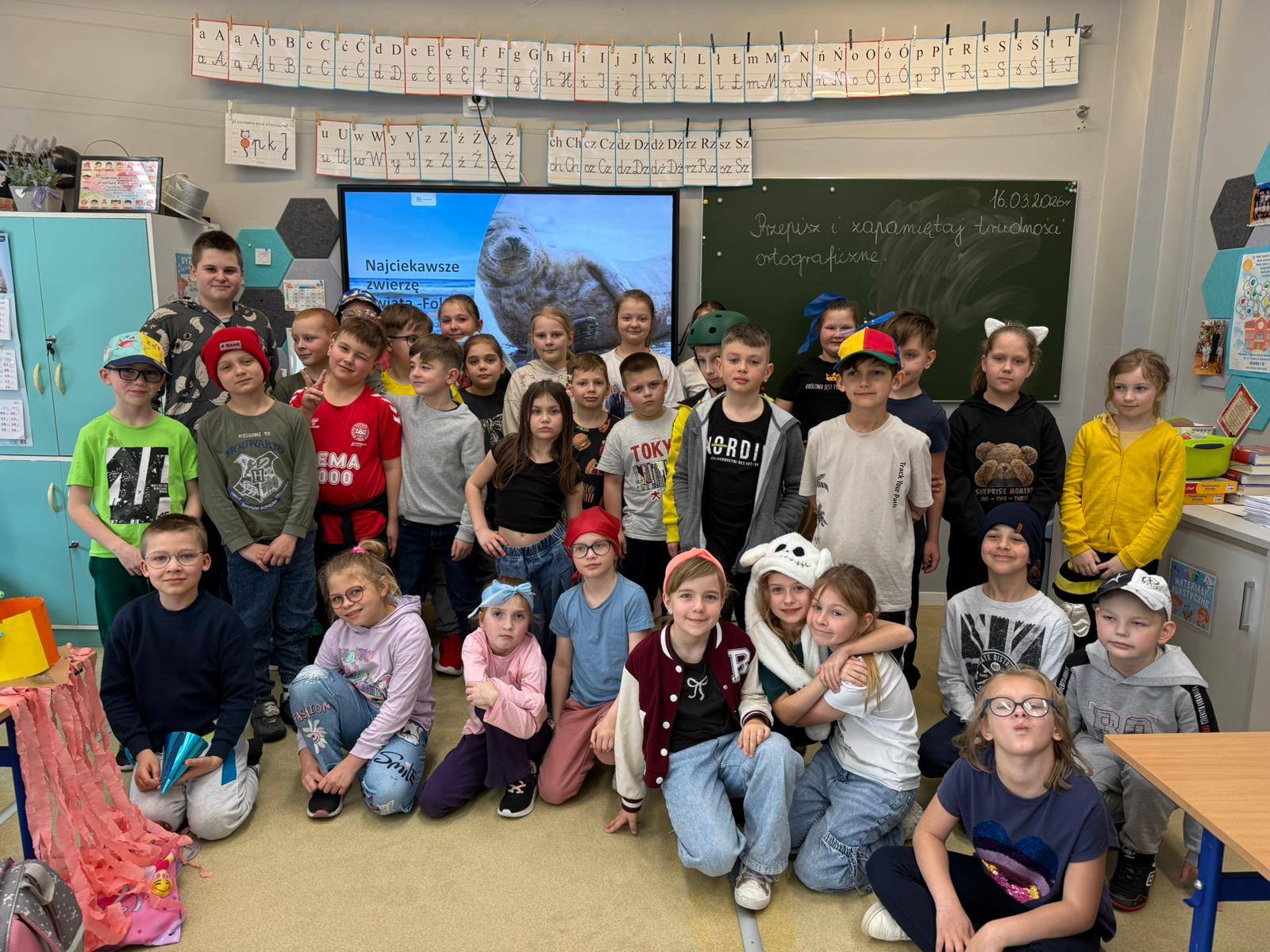 16 marca uczeń klasy 7c - Brajan Kraczka - przygotował i wygłosił dla wszystkich uczniów klas drugich prelekcję na temat fok. Podczas spotkania przedstawił wiele ciekawych informacji dotyczących życia tych zwierząt, ich środowiska naturalnego oraz sposobu odżywiania. Prelekcja była bardzo interesująca, zawierała dużo wartościowych oraz zaskakujących wiadomości, które wzbudziły ogromne zainteresowanie słuchaczy. Spotkanie było kolejnym elementem udziału naszej szkoły w powiatowym konkursie „Łączy nas więcej niż WiFi". Brajan pokazał nam wszystkim, jak pięknie można spędzać czas bez ekranu smartfona. Dziękujemy mu za wspaniałe spotkanie, podczas którego zaprezentował siebie i swoją ogromną pasję. Dzięki takim momentom tworzymy społeczność, w której każde połączenie ma znaczenie.