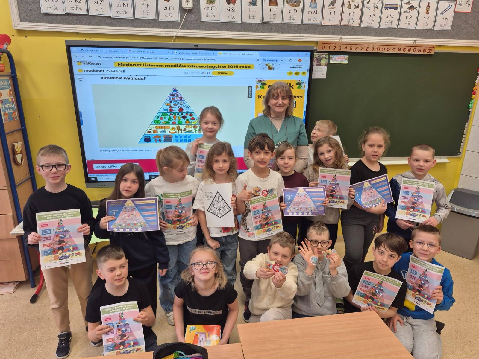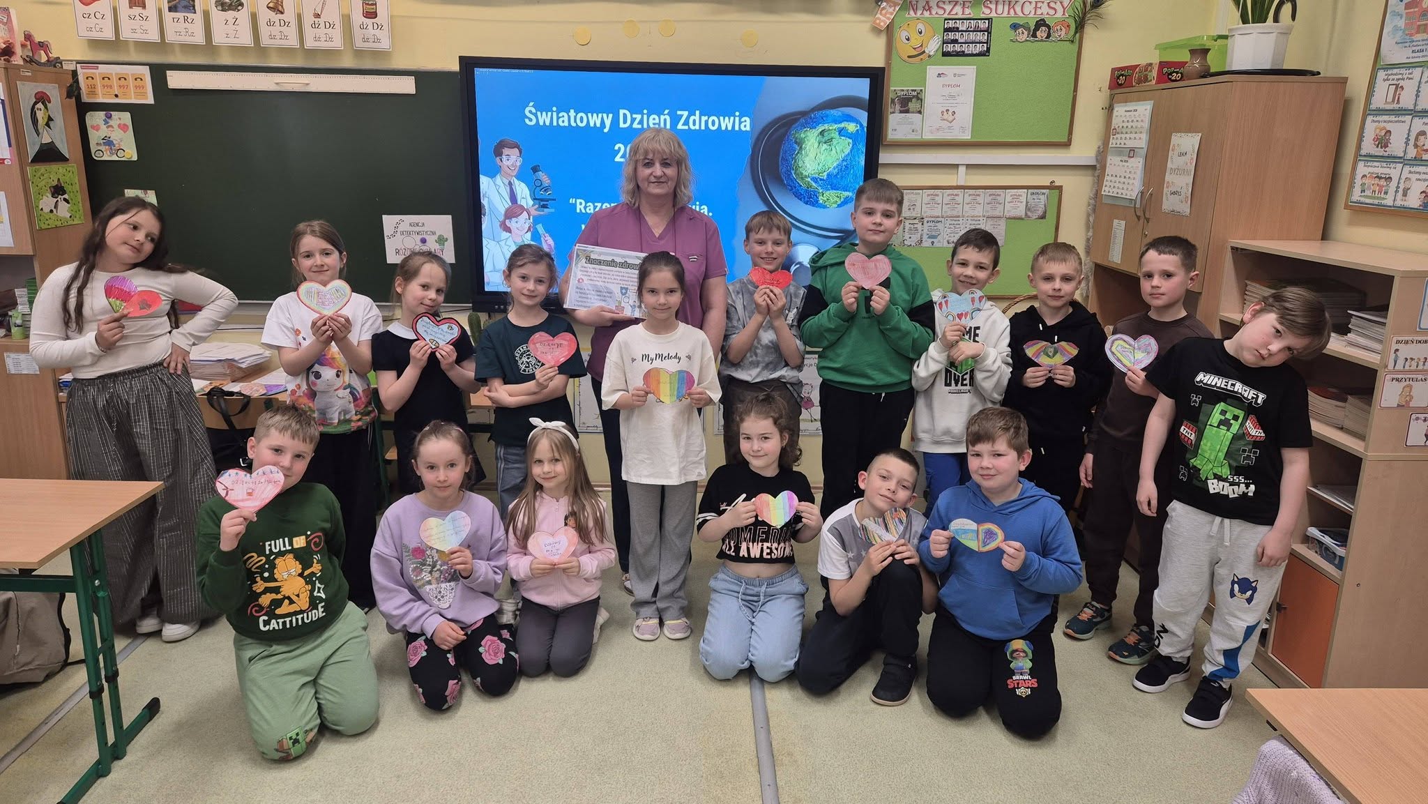 W kwietniu, z okazji Światowego Dnia Zdrowia, w klasach 2a, 2b i 2d odbyły się spotkania z pielęgniarką szkolną, których tematem była profilaktyka zdrowia. Podczas zajęć uczniowie dowiedzieli się, jak ważne jest codzienne dbanie o higienę osobistą, regularna aktywność fizyczna oraz odpowiednia ilość snu. Pani pielęgniarka zwróciła uwagę na znaczenie zdrowego odżywiania, podkreślając rolę warzyw, owoców, wody oraz ograniczenia słodyczy i niezdrowych przekąsek w codziennej diecie. Omówiła także podstawowe zasady dbania o zdrowie psychiczne , takie jak radzenie sobie z emocjami , a także umiejętność rozmowy o swoich uczuciach oraz szukanie wsparcia u bliskich i nauczycieli. Zajęcia miały charakter interaktywny – dzieci chętnie odpowiadały na pytania i dzieliły się swoimi doświadczeniami. Spotkanie było bardzo wartościowe i przyczyniło się do zwiększenia świadomości uczniów na temat zdrowego stylu życia.