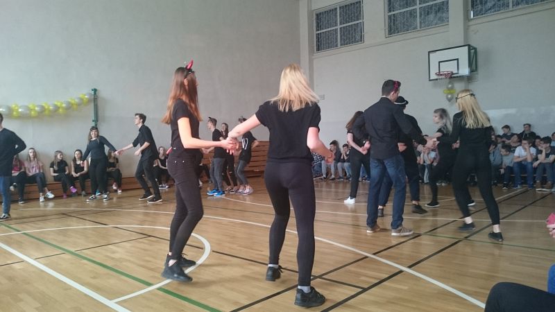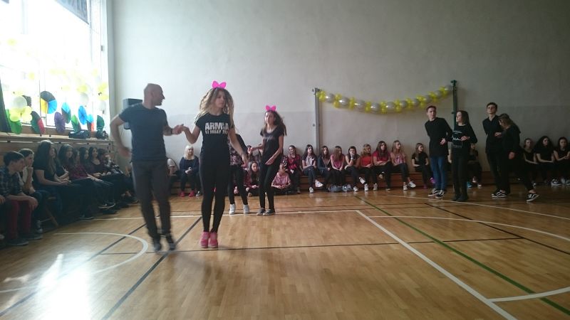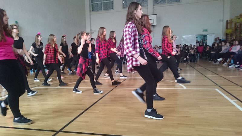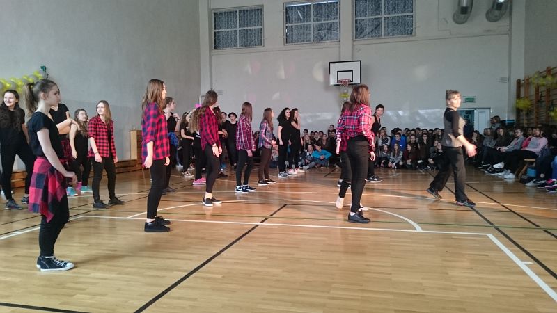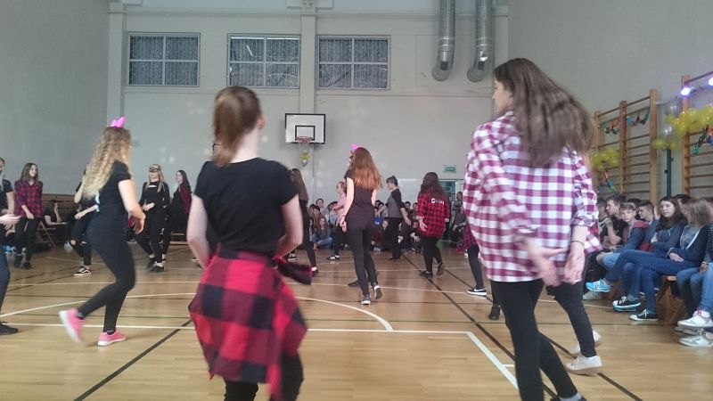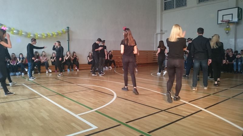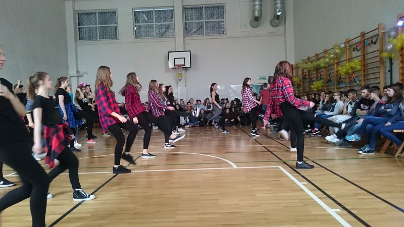 W ostatni dzień przed feriami odbył się pokaz taneczny, w którym wystąpiło prawie 70 uczniów. Układy taneczne mogli obserwować głównie uczniowie klas I i II, chociaż nie zabrakło też przedstawicieli klas III.